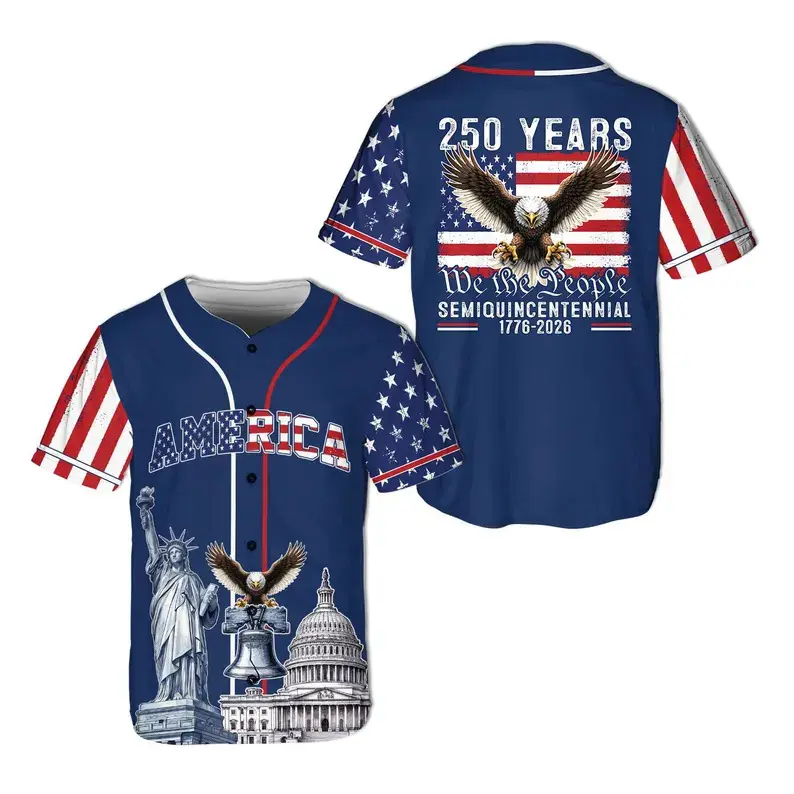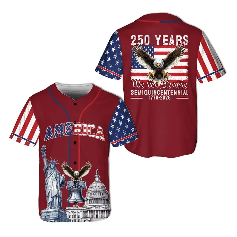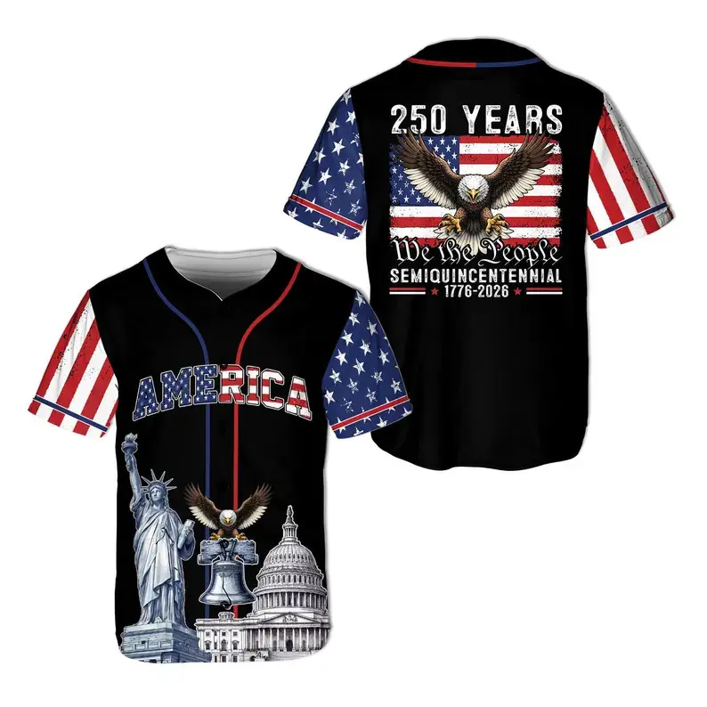 Bald Eagle 250 Years Of Freedom baseball jersey. America 250th Anniversary 1776–2026 with USA flag. Great 4th of July gift. Multiple colors available.