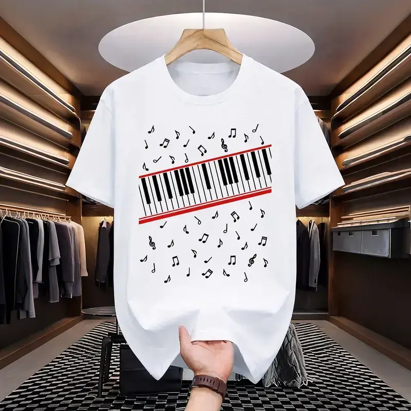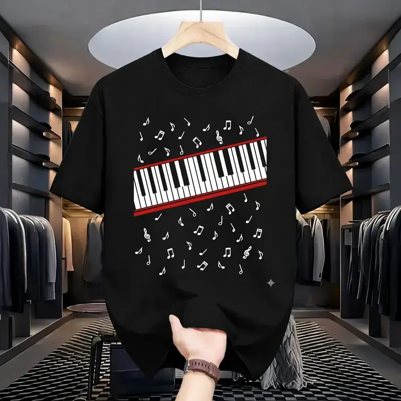 MJ "Music Notes Piano" Graphic Tee, Oversized Heavyweight Cotton Tee, Keyboard Design Shirt, Music Lover