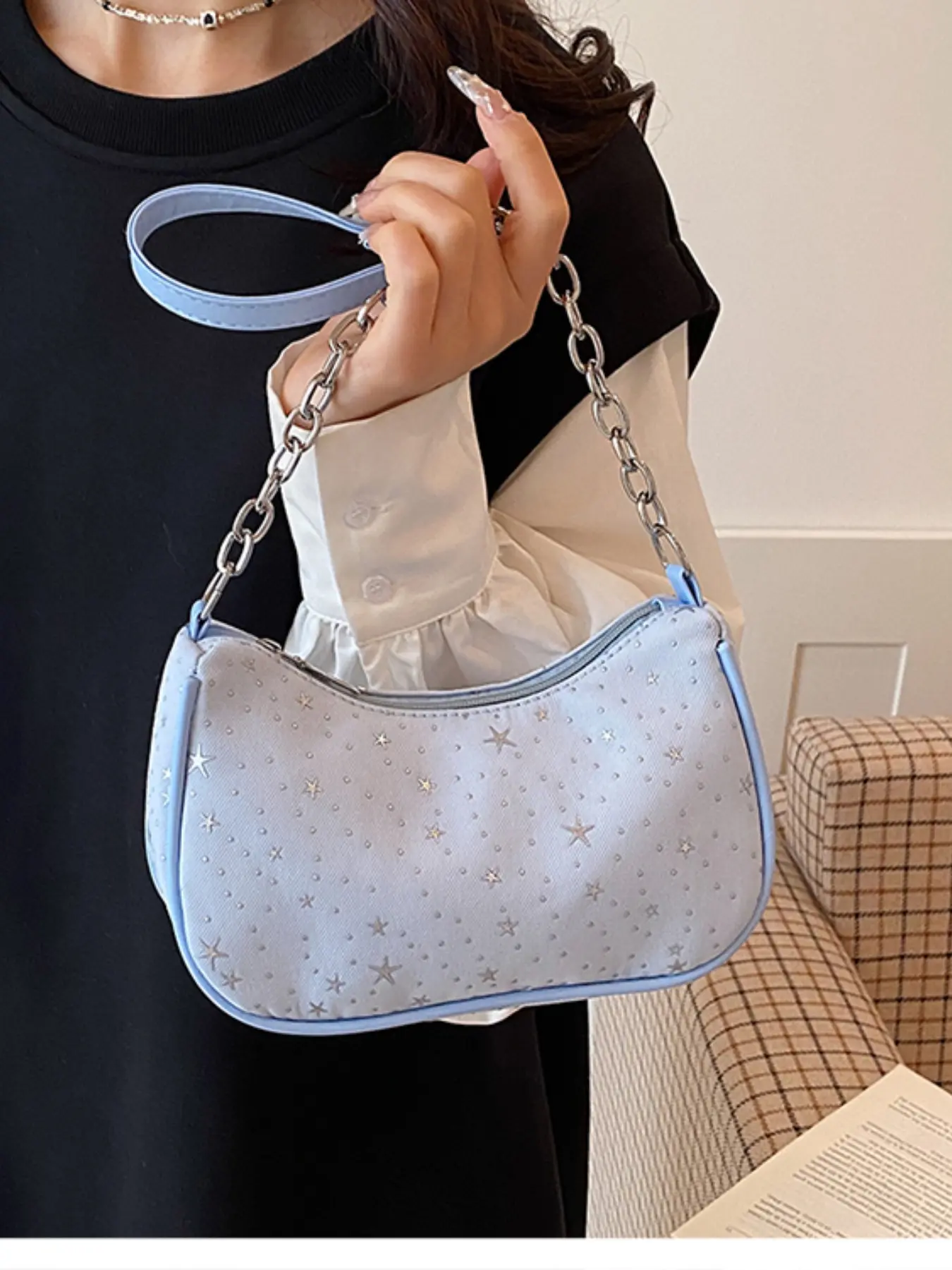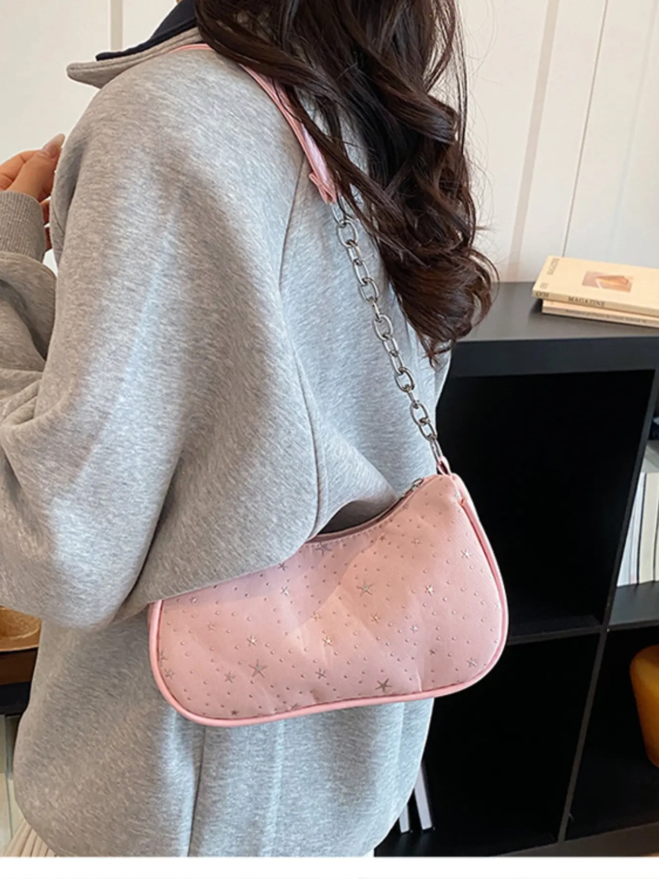 Gentle Star Print Underarm Bag, Adjustable Drawstring Handle, Spring Summer Commuter Shoulder Bag, Trending 2026 Fashion Accessory