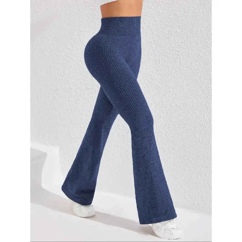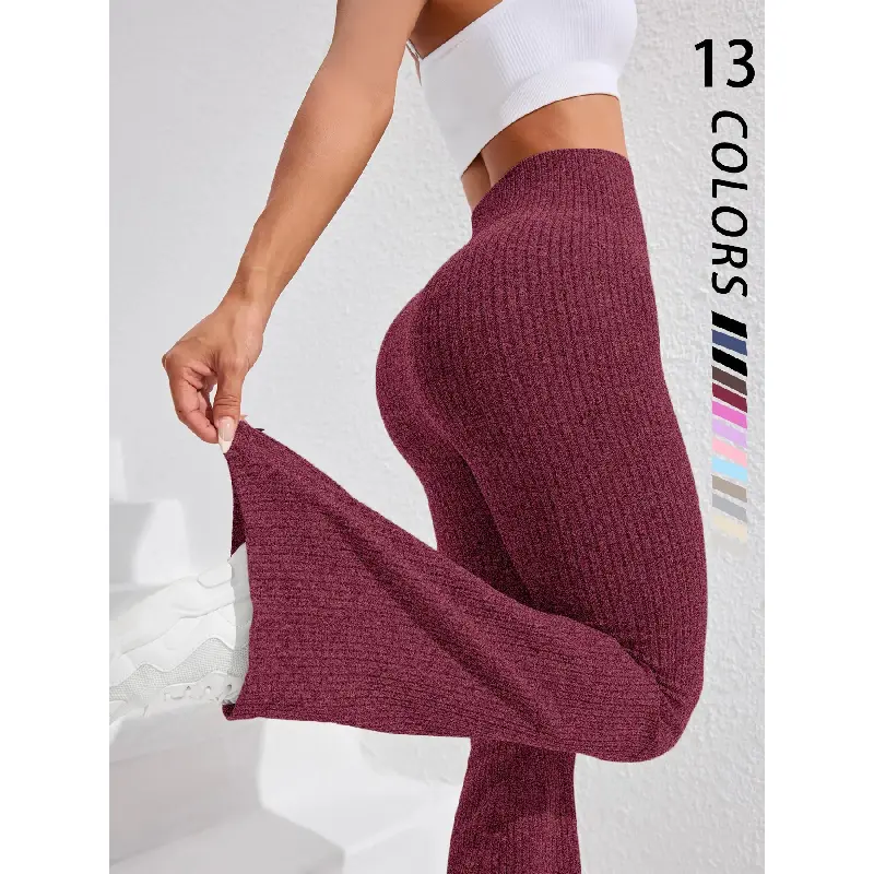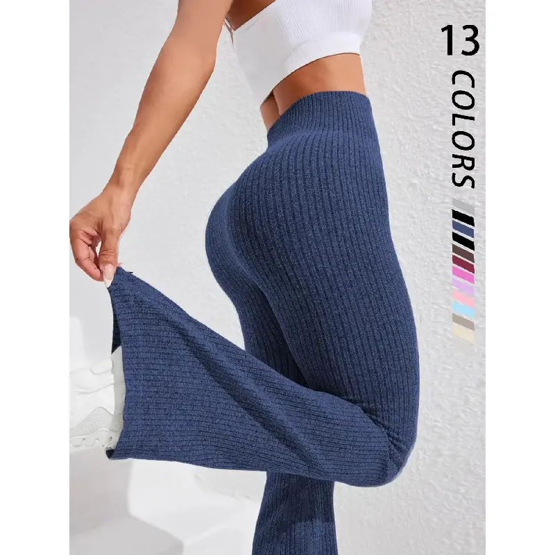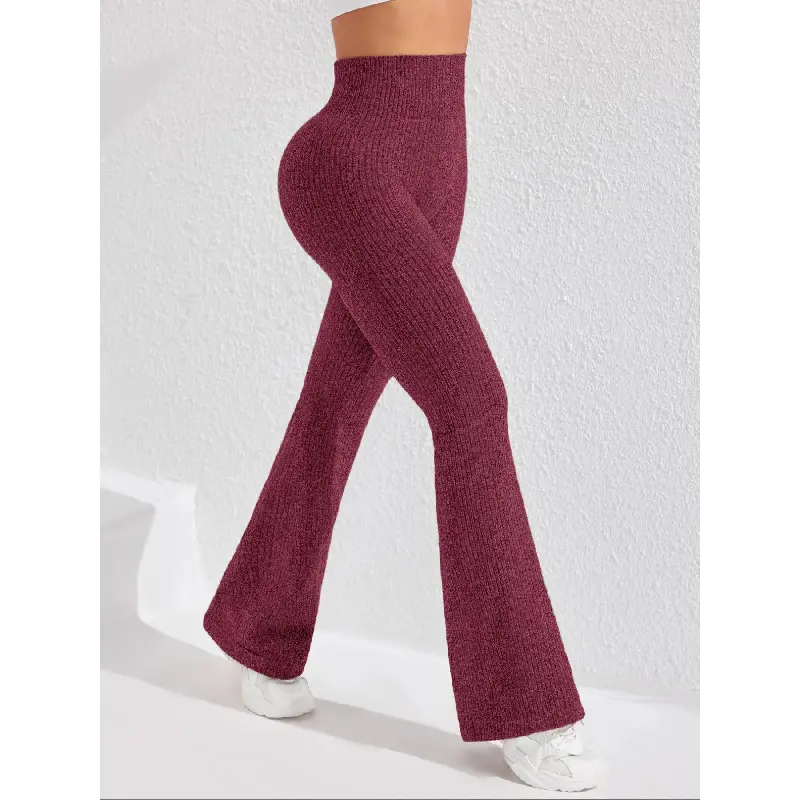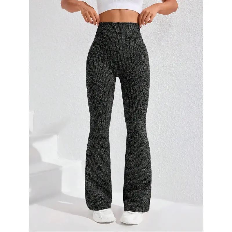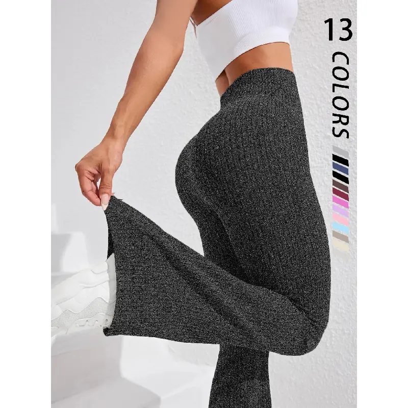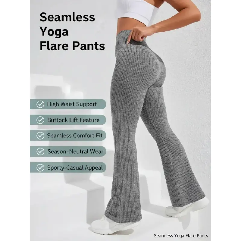 Women's Seamless Knitted Textured Yoga Flare Pants, High Waisted Butt Lifting Control, Sporty Casual Fashion, All Seasons Wear, Seamless Workout Leggings
