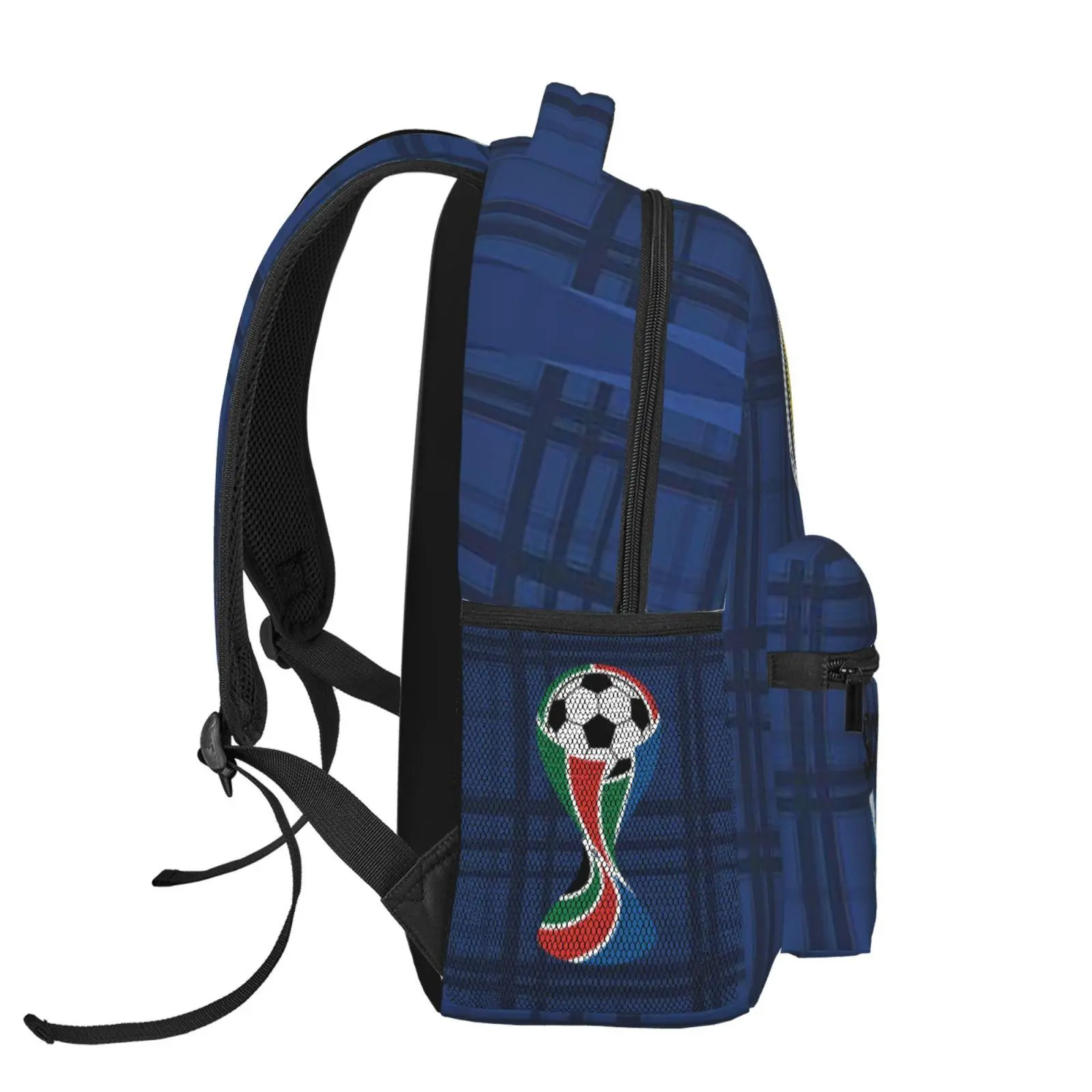 ✨ Spacious & Well-OrganizedMeasuring 11.42" L × 5.12" W × 14.57" H, this Scotland Team laptop backpack provides generous storage space. The main compartment with internal pockets keeps magazines, clothing, documents, and folders neatly organized. It also has a front zippered pocket and expandable side pockets for water bottles, umbrellas, small accessories, and snacks, making it highly practical for work, school, and travel.
