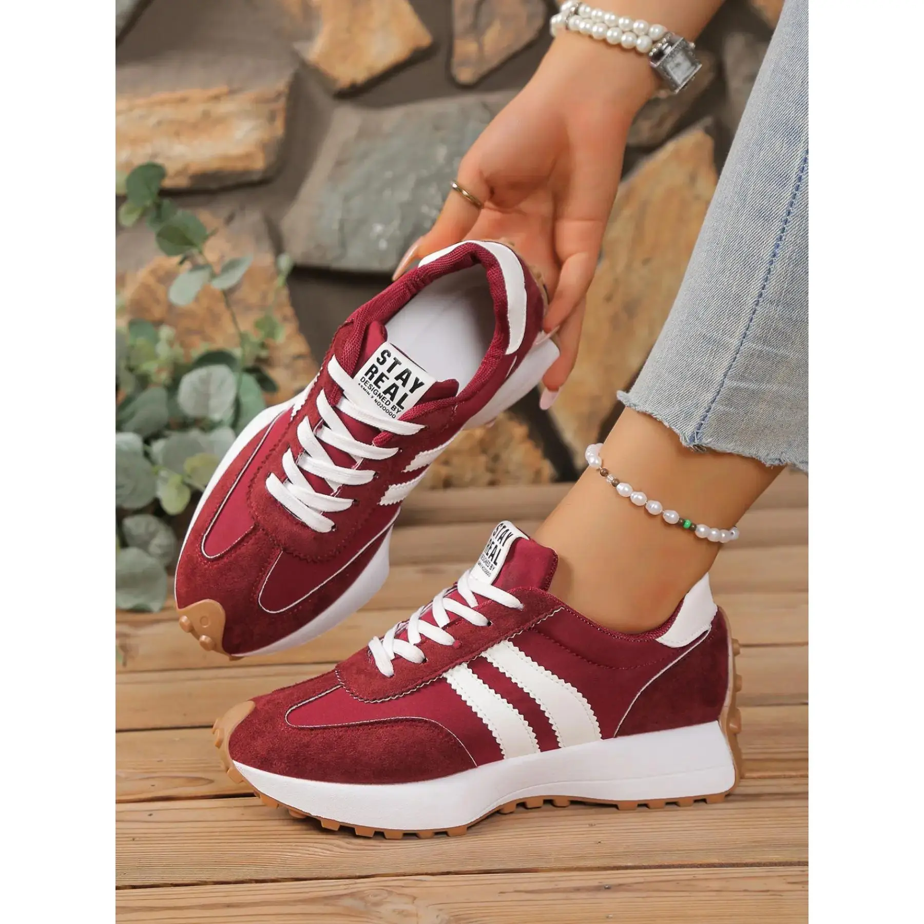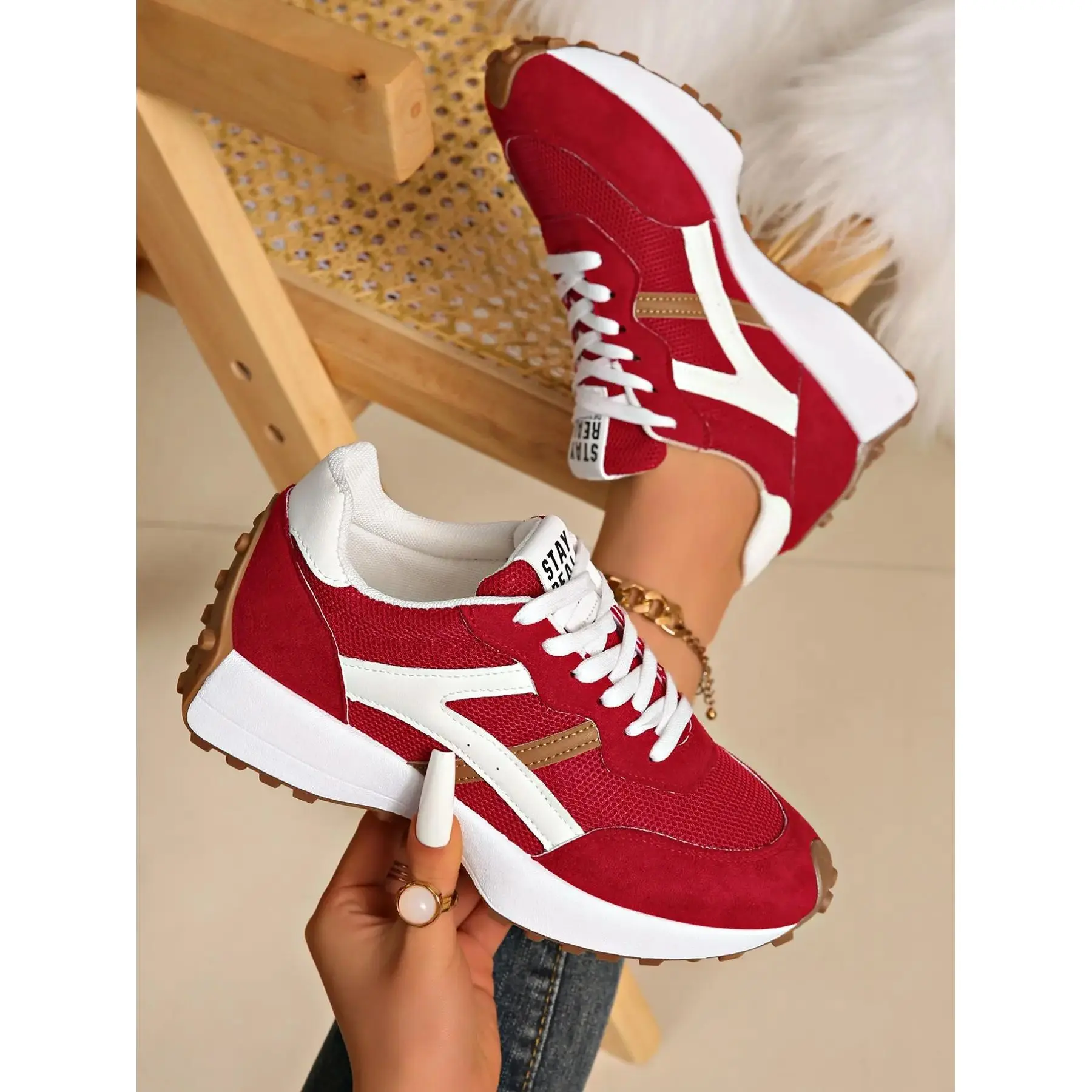Women's Comfortable Lace-Up Sports Shoes, Lightweight Multi-Color Casual Sneakers, Anti-Slip Rubber Sole, Classic Style for Daily Wear, Lightweight Athletic Sneakers, Lifestyle Sneakers1123