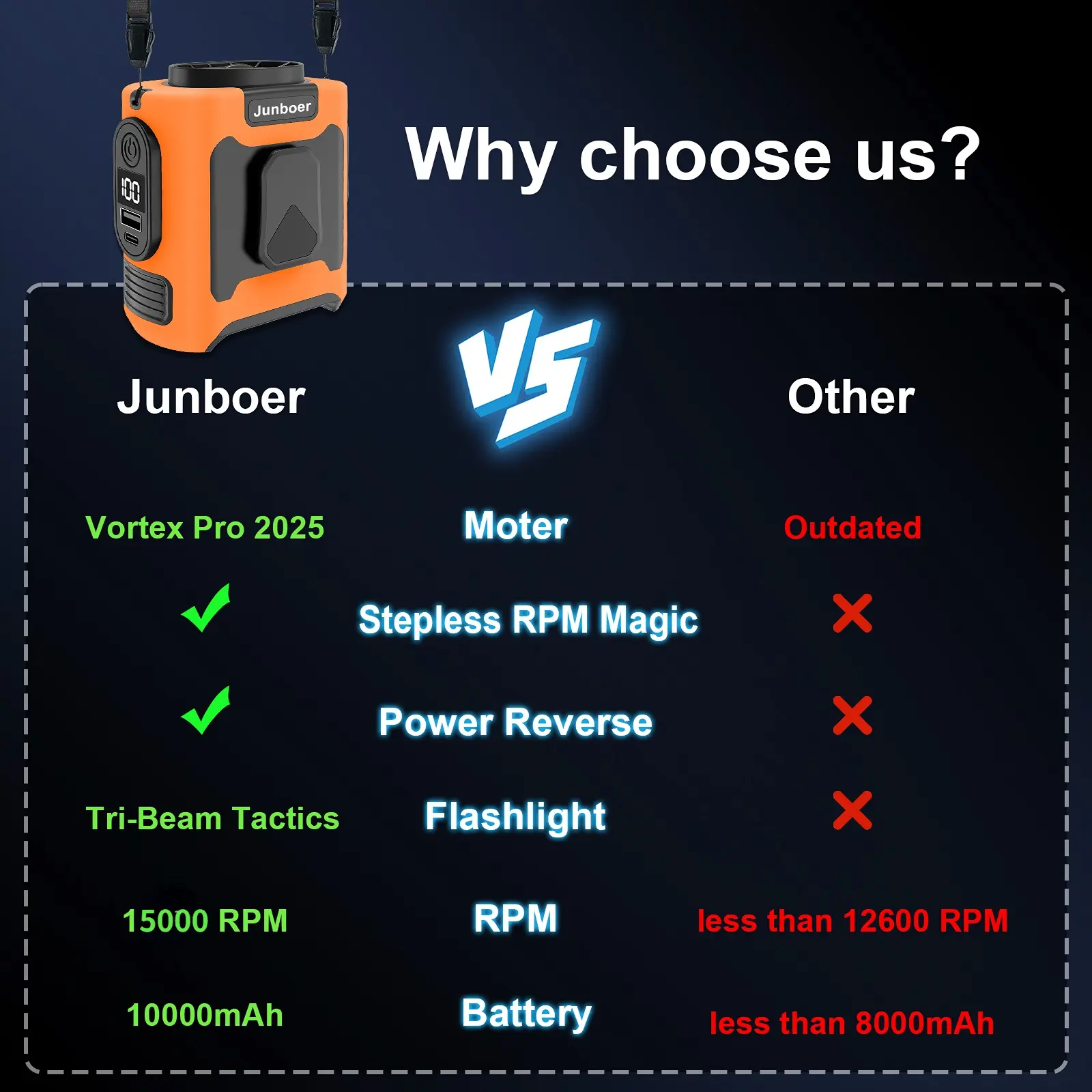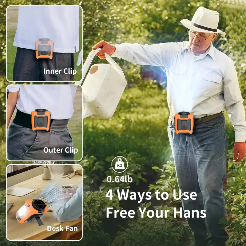Ditch sweaty adventures! Our waist fan clips on & blasts 360° cooling airflow while you hike, camp, or dance at festivals. Stay cool, stay free!