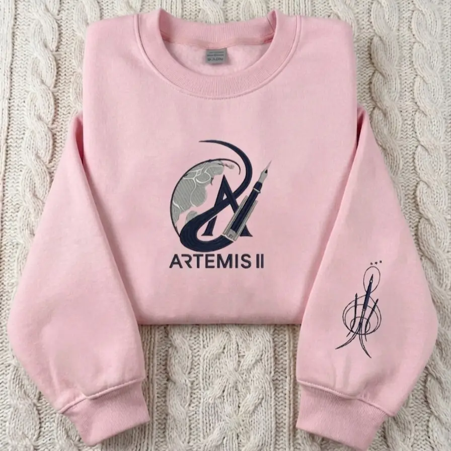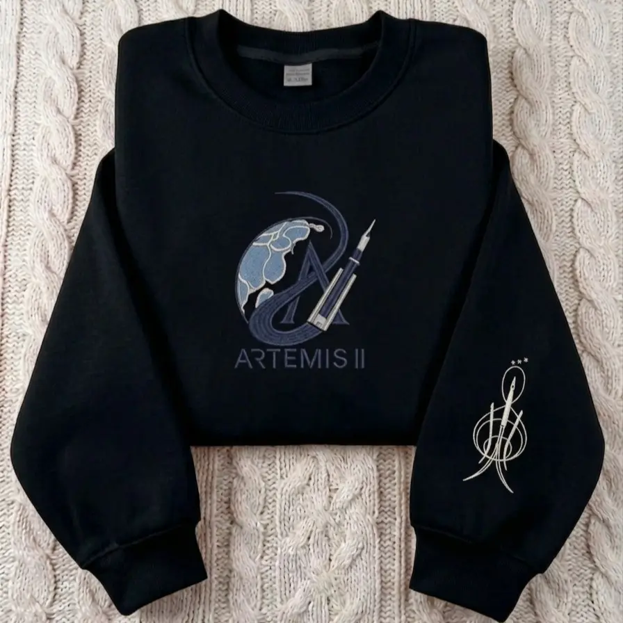 NASA Artemis II Embroidered Crewneck Sweatshirt, Space Mission Hoodie, Moon Landing Sleeve Design, Astronomy Gift for Him, STEM Lover Pullover