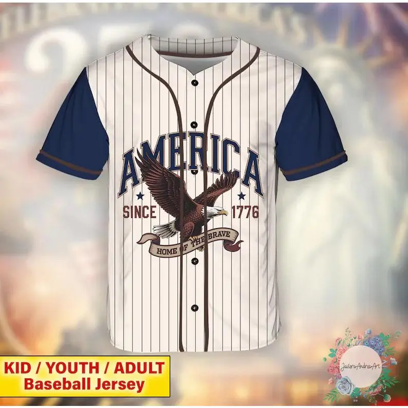 America 250th Anniversary 1776–2026 baseball jersey. Semiquincentennial patriotic design featuring We The People, eagle and Statue of Liberty. Great for 4th of July.