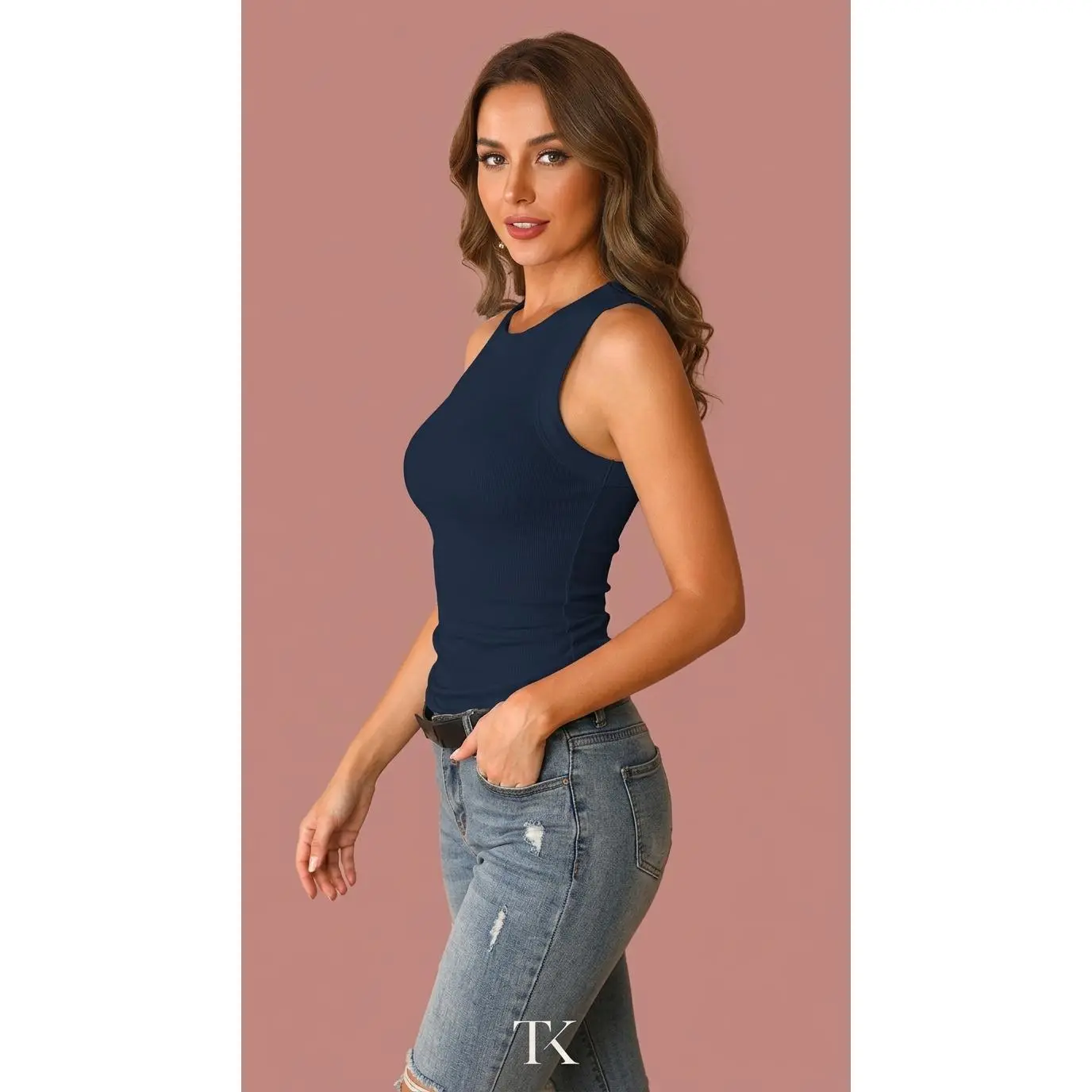 Serenade Ribbed Knit Tank Spring/Summer Solid Color Printed Round Neck Tank Top for Women