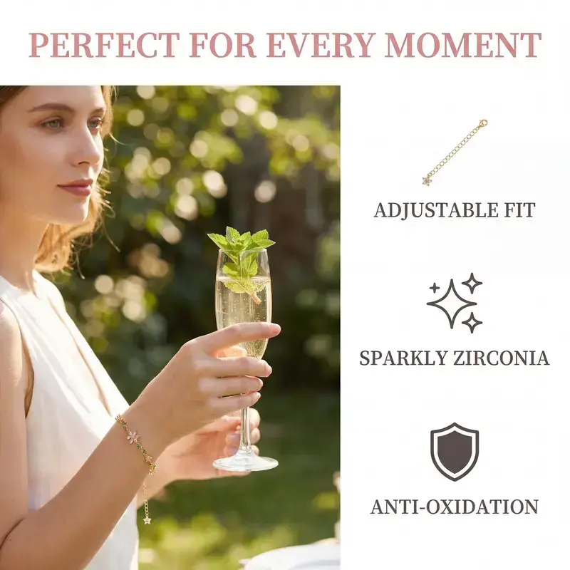 ·Details: The bracelet features dainty flower zircon designs, creating a beautiful and intricate look. It's a versatile piece for various occasions. 🌸