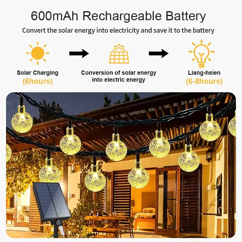 Solar LED Bubble Light String, Solar Crystal Ball, Outdoor Solar Lamp, 8 Lighting Modes, Garden Lantern, Party Decor