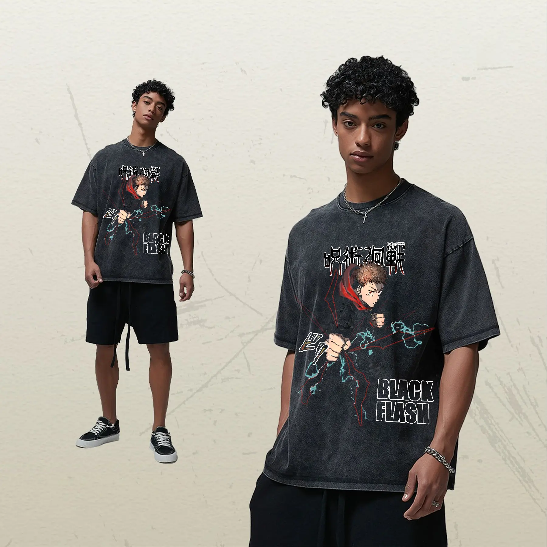 Retro Heavy Itadori Yuji Satoru THE HONORED ONE Jujutsu Kaisen Anime Front Printed Vintage Washed Tee Unisex Oversize Anime Manga Washed Heavyweight Cotton T-shirt, Gift For Anime Fan Lover