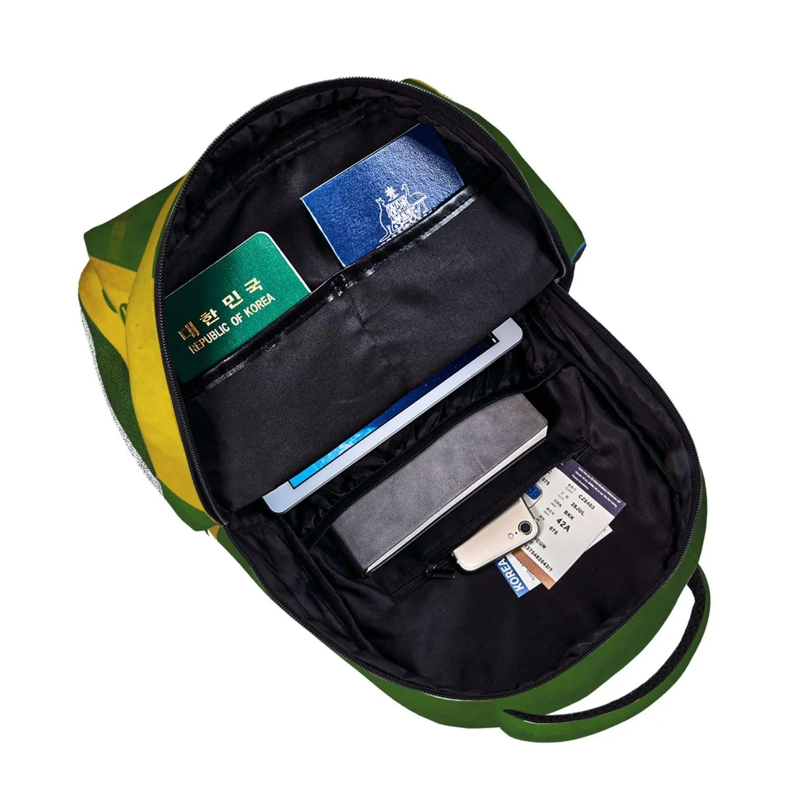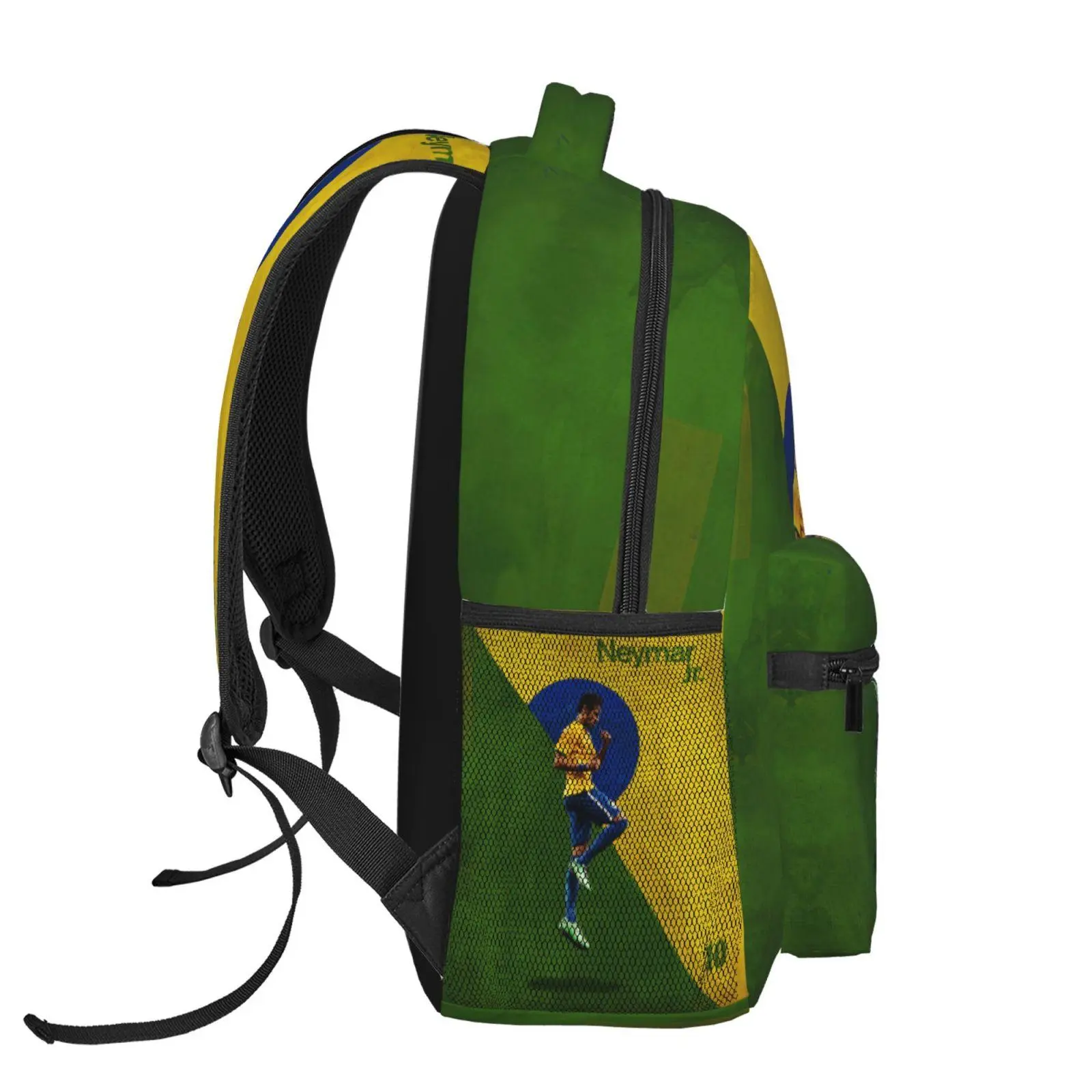 ✨ Spacious & Well-OrganizedMeasuring 11.42" L × 5.12" W × 14.57" H, this Brazilian Players laptop backpack provides generous storage space. The main compartment with internal pockets keeps magazines, clothing, documents, and folders neatly organized. It also has a front zippered pocket and expandable side pockets for water bottles, umbrellas, small accessories, and snacks, making it highly practical for work, school, and travel.