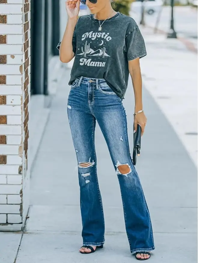 Pair these jeans with a simple top for a chic, casual ensemble. The combination of style and comfort makes them a must-have for your wardrobe. These jeans are perfect for everyday wear, offering a blend of elegance and practicality.