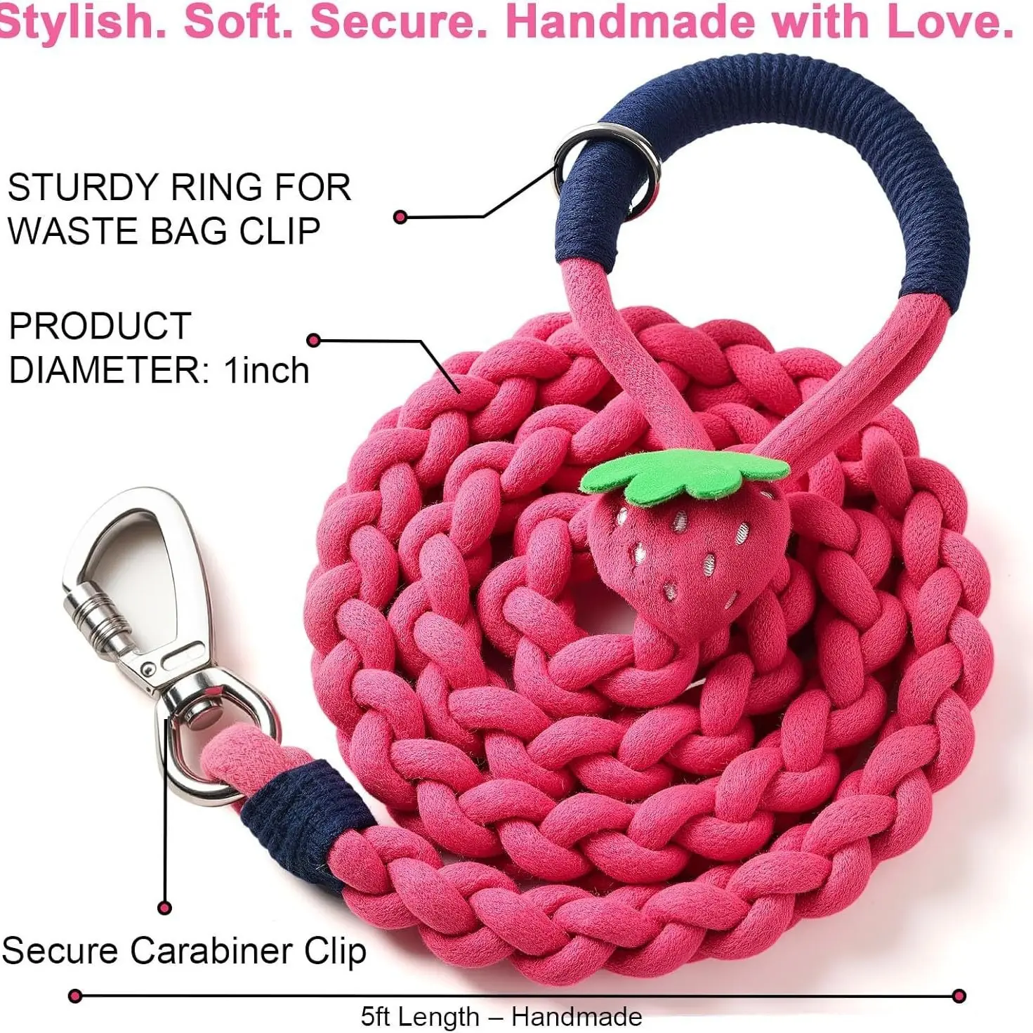 Heavy Duty Braided Rope Dog Leash, Soft Cotton Design with Locking Clip for Medium & Large Dogs – Ideal for Walking & Training (Green – Avocado Plush)