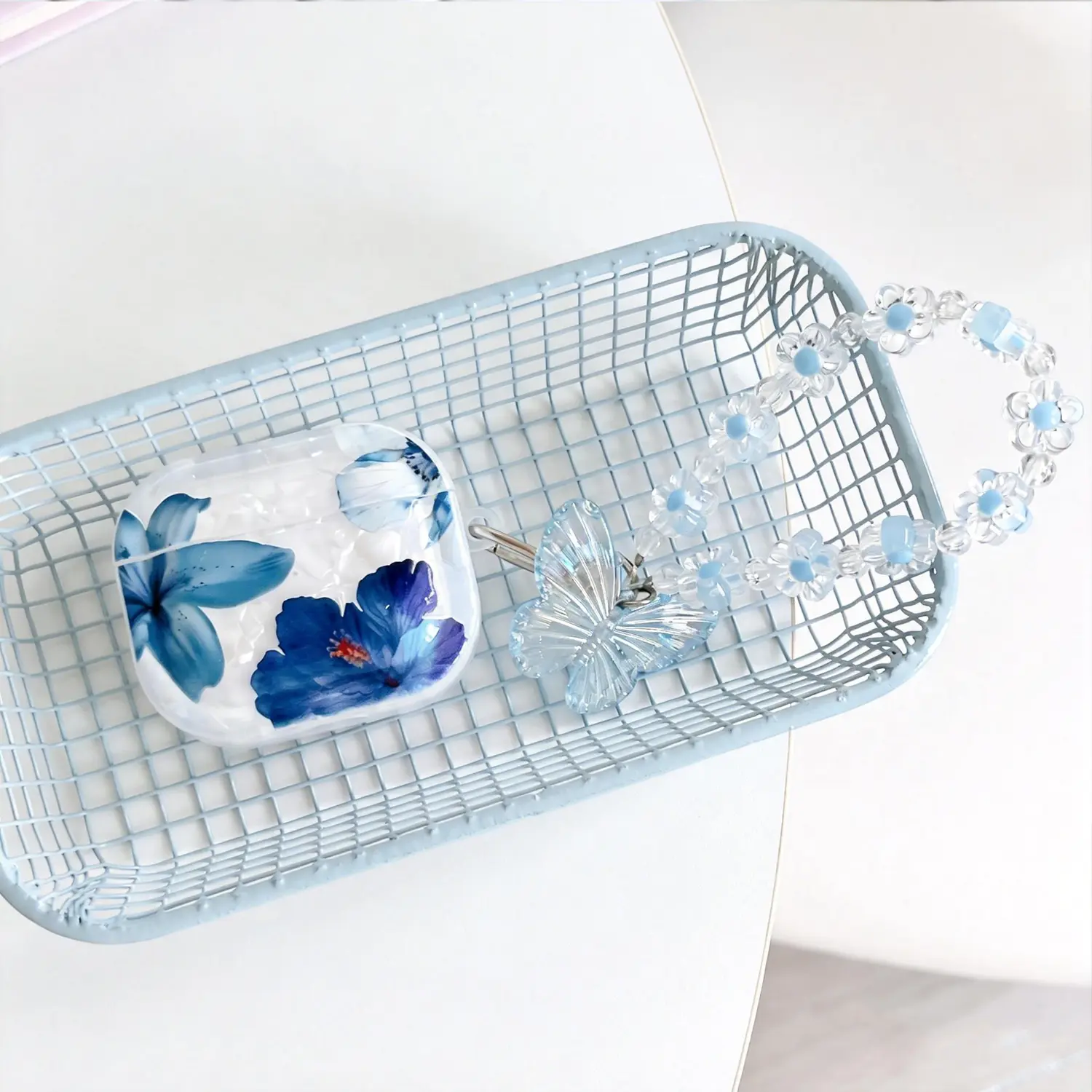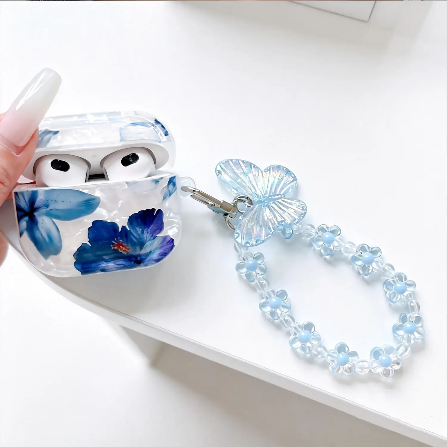 Butterfly Pearl Pendant Case for Airpods Pro 3/2/1 Airpods 4/3/2/1, Kawaii Dreamy Blue Butterfly Shell Design Shockproof Earphone Protective Cover for Girls Women
