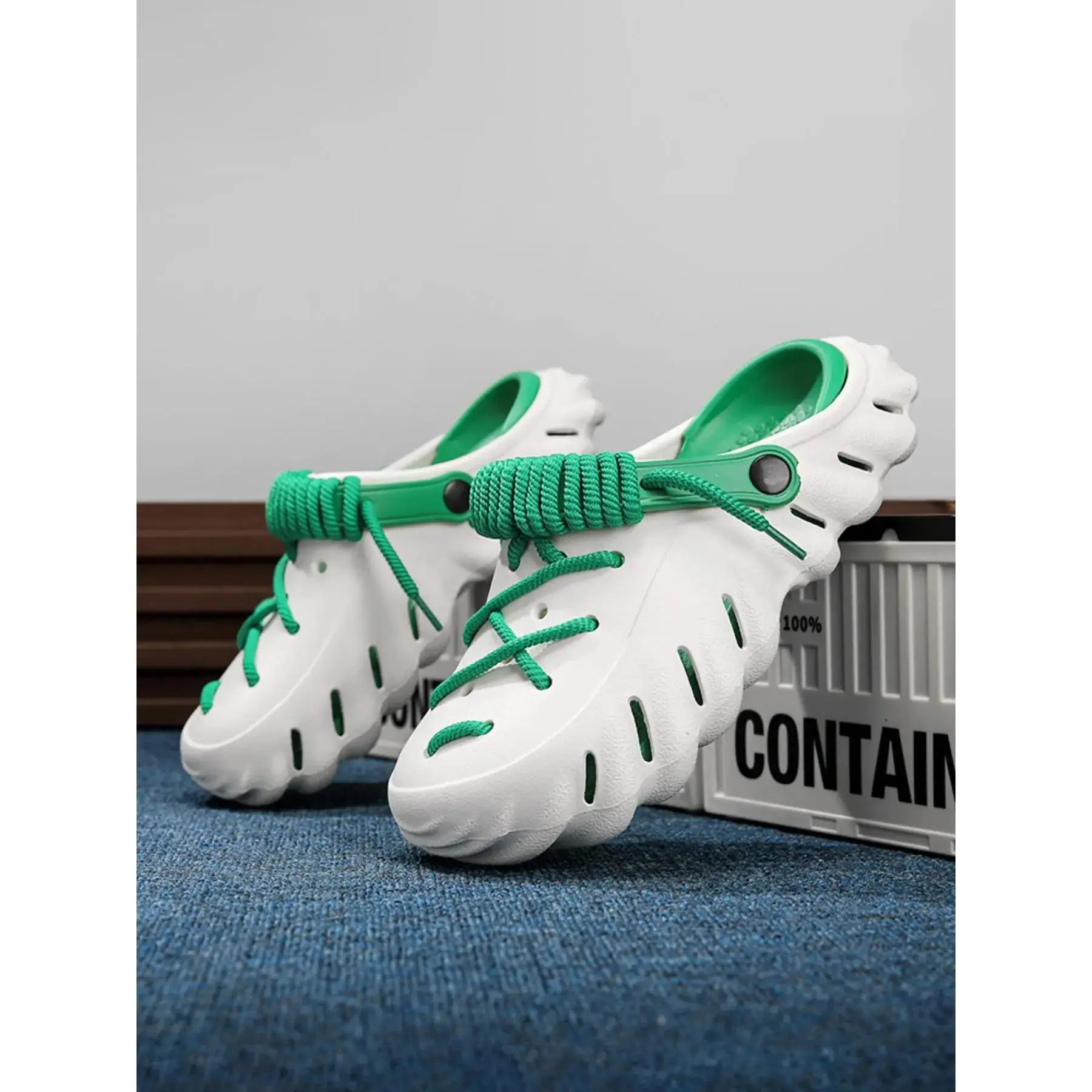 Unisex's Minimalist Plain Color Lace-tied Clogs, Casual Comfortable Breathable Clogs Flat Slippers, Fashionable Clogs for Indoor & Outdoor Wear, Unique Sandals