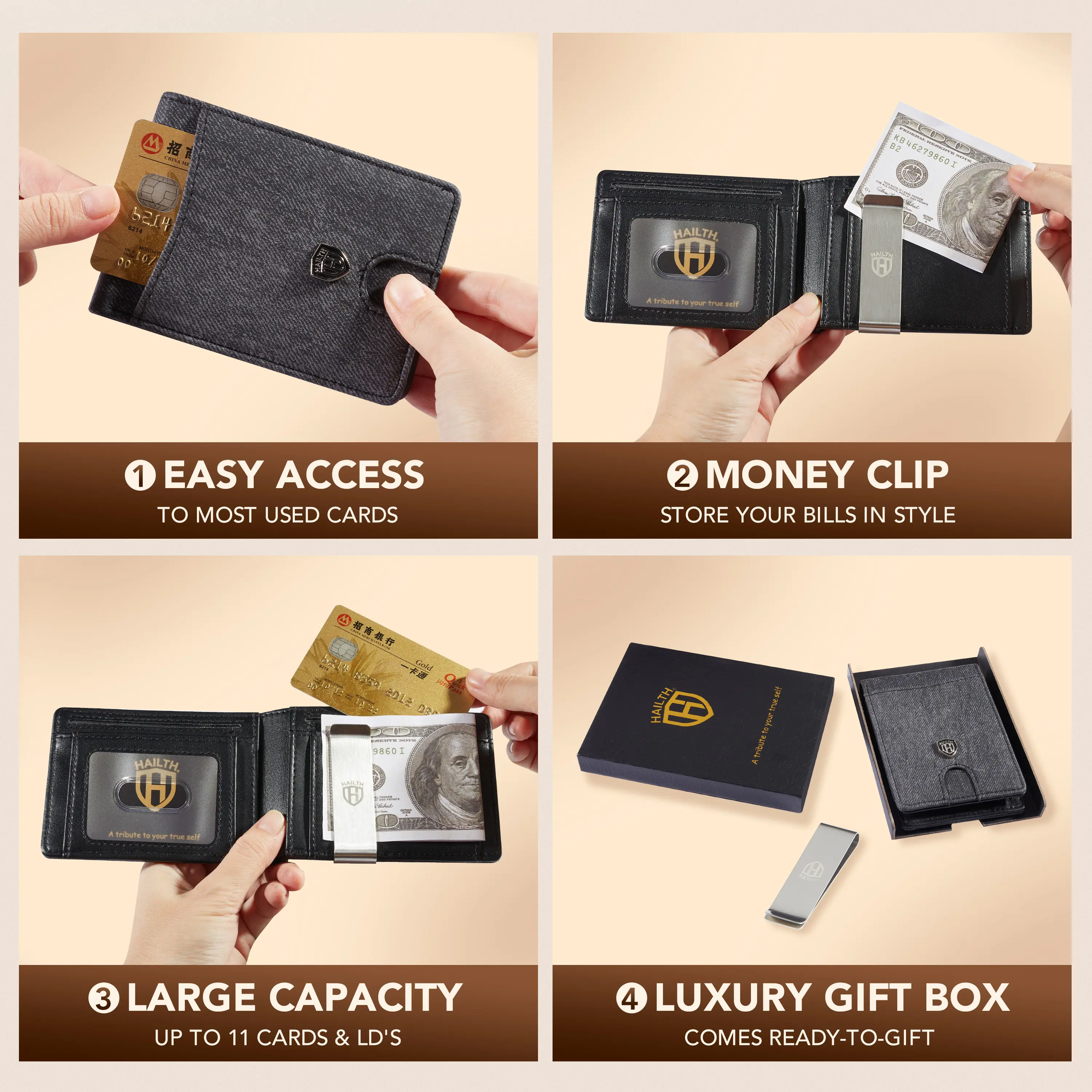 2、RFID Blocking Protection: Our HAILTH wallets feature advanced RFID security technology, constructed with a specialized metal composite to block 13.56 MHz or higher RFID signals, effectively safeguarding your personal information and privacy.