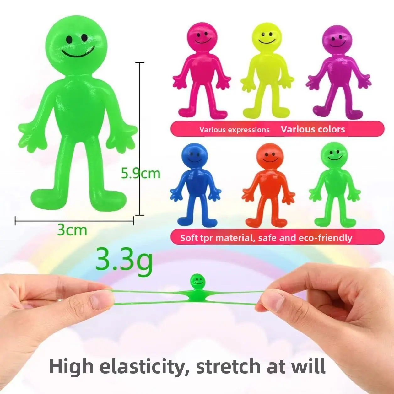 TPR Expression Little Man Squishy Toy – Smiley Face Stretchy Stress Reliever, Elastic Pull & Squeeze Decompression Toy, Soft & Durable marble ez