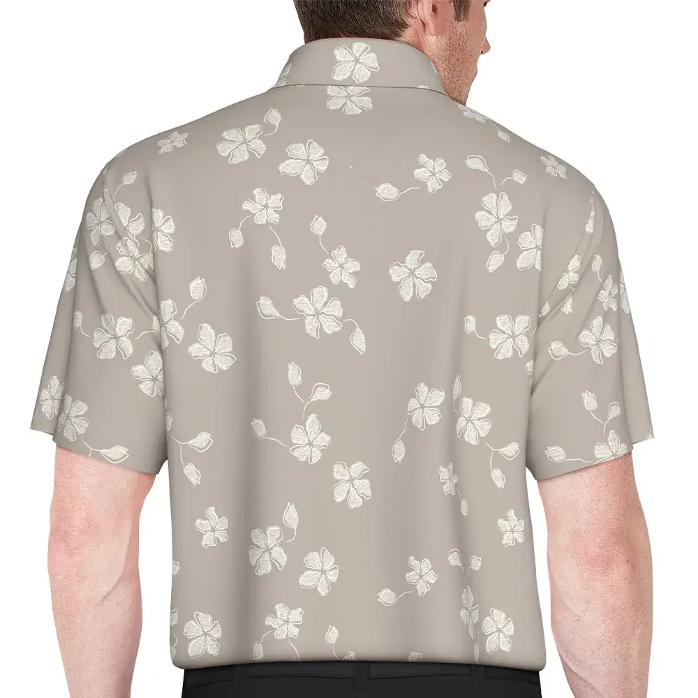 Introducing the Ben Hogan Men's All Over Floral Polo. This stylish polo features a unique floral design, moisture-wicking fabric, and UPF 15 protection. Stay cool and comfortable on the course while looking your best. Elevate your golf wardrobe with this standout piece.