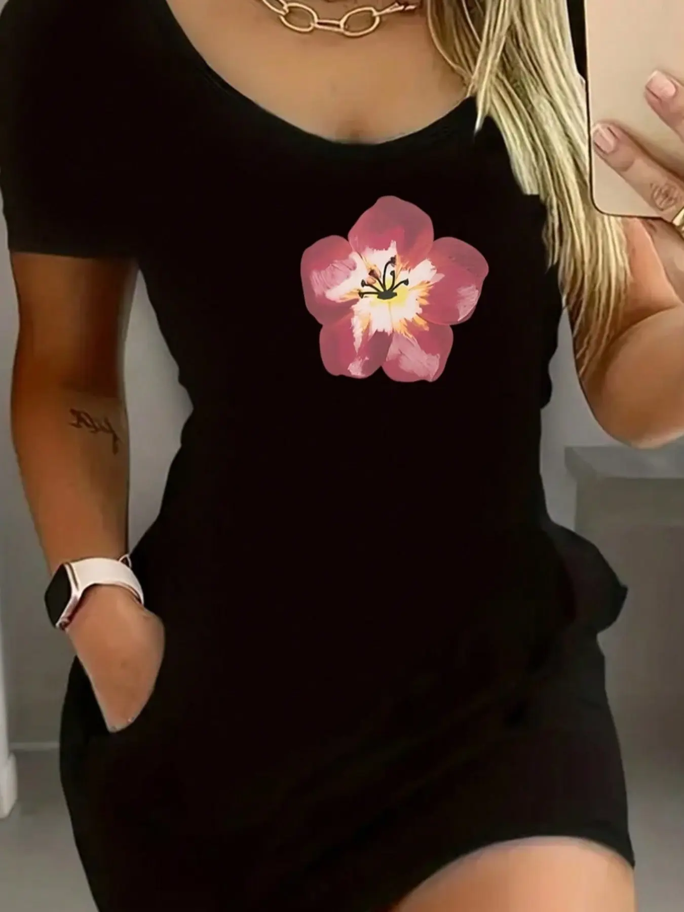 Women's Sexy Style Heart Pattern Short Sleeve Skirt, Casual Daily Wear, Perfect for Leisure Outings and Activities, Slim-Fitting Floral Dress