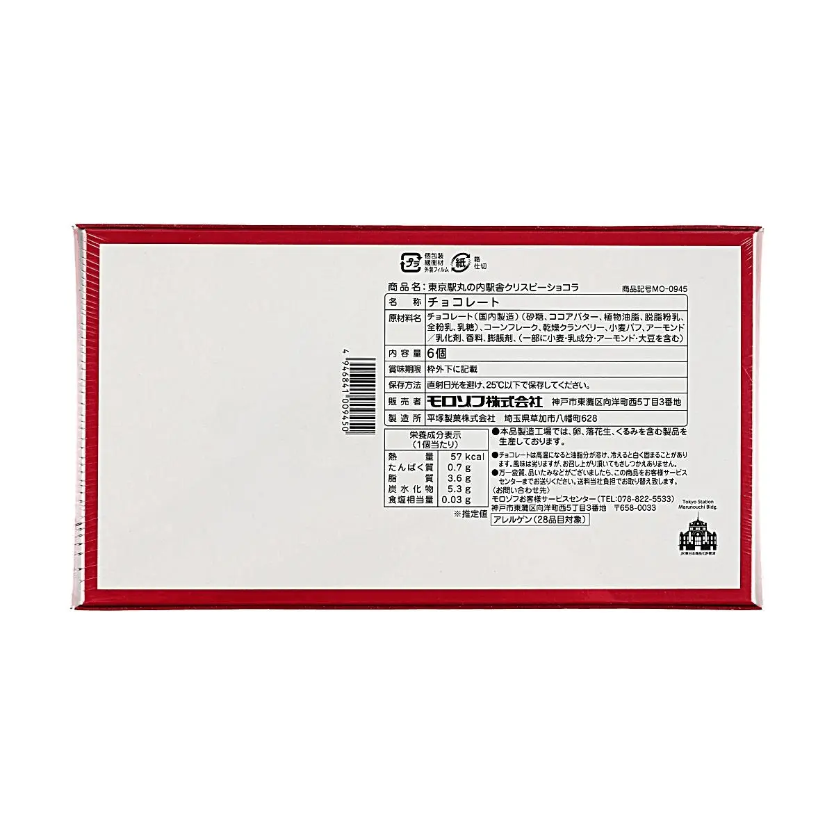 Morozoff Tokyo Station Limited Crispy Chocolate Gift Box - White Chocolate Cranberry Flavor (6 pcs) - Exquisite Marunouchi Building Design - Popular Japanese Souvenir