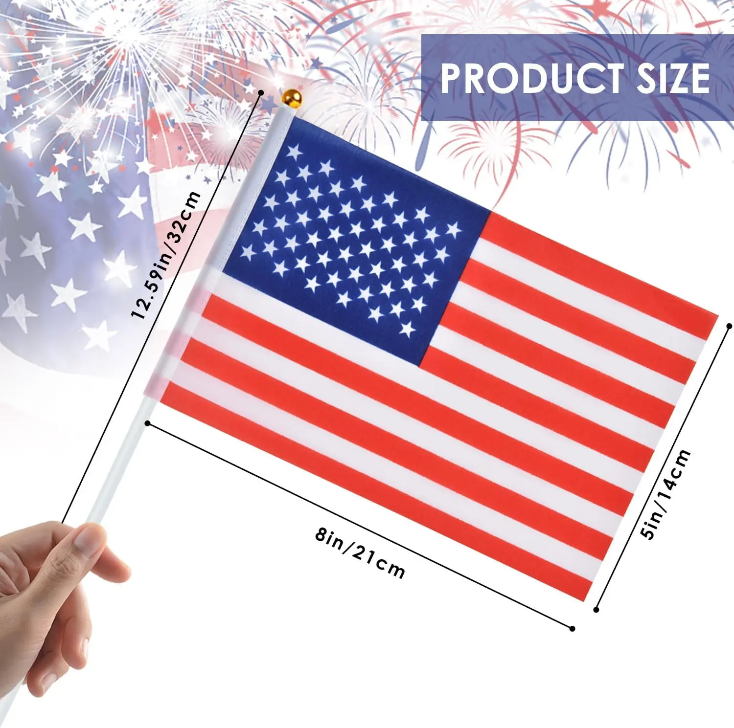 ·【HIGH QUALITY】: The American hand waving flag has a long service life, which is made of 100% durable polyester fabric. It's waterproof and will not fade after raining, also not be curly and not easy to be deformed, suitable for outdoor use.