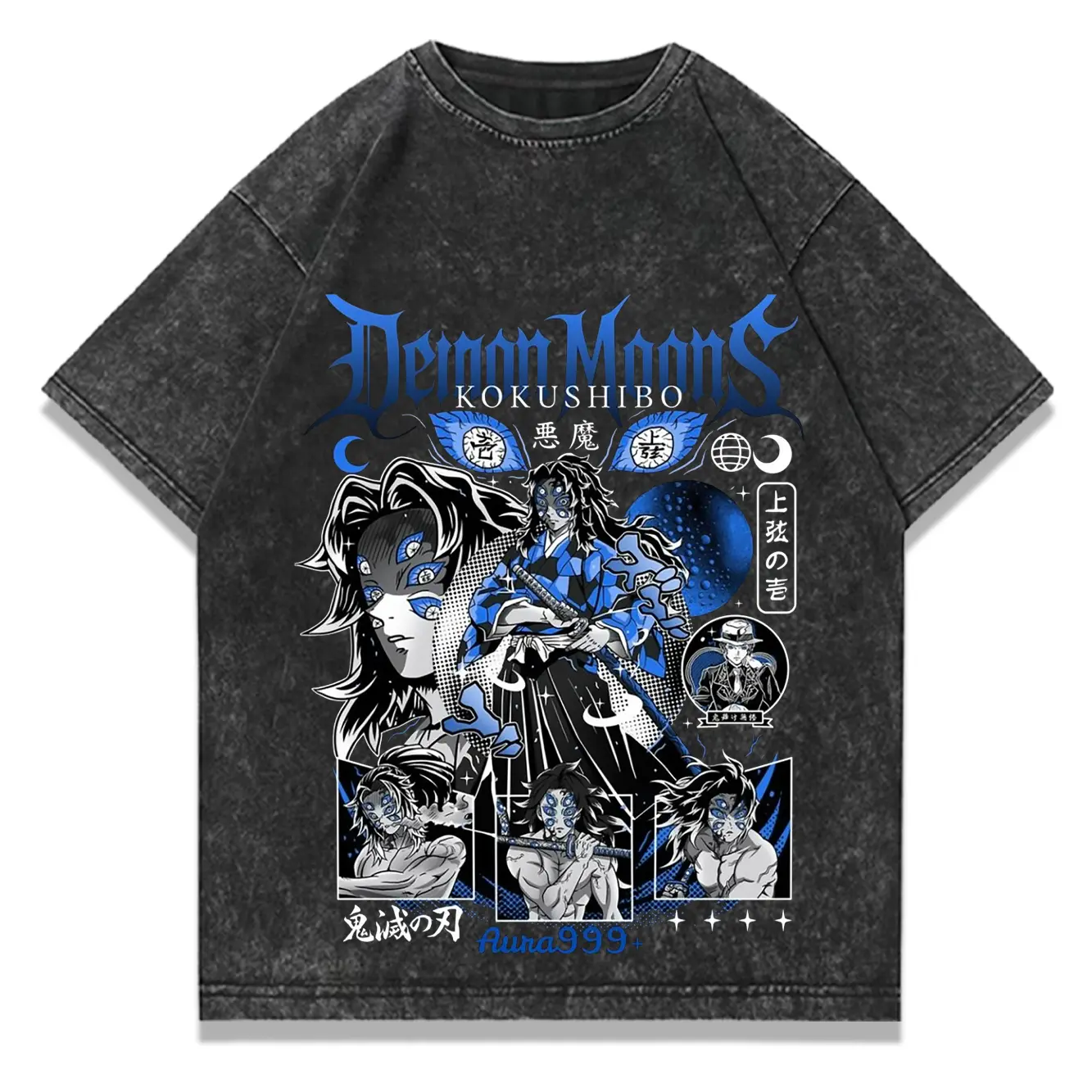 Vintage Distressed Demon Slayer Kokushibo T-Shirt, Oversized Upper Moon One Anime Graphic Tee, Retro Horror Streetwear