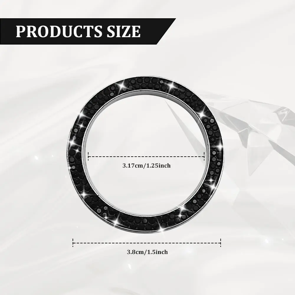 [Universal fit] : This sparkling push start button sticker diameter is 1.53 inch; inner diameter of the ring is 1.2 inch; thickness is 0.115 inch. It is a universal Key Ignition & Knob Ring Decoration for most cars SUVs, MTVs with ignition start button