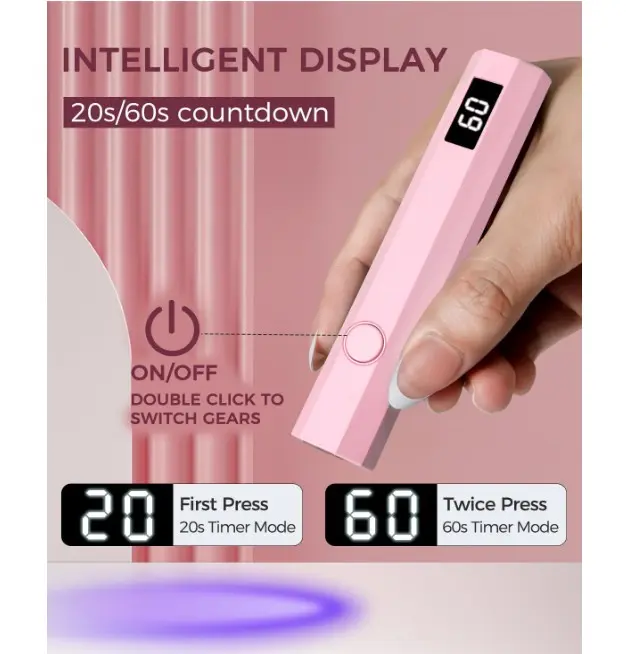 ·20S/60S TIMING: mlogiroa uv light for nails button design, easy to operate; there are 2 gears countdown time, press the first time is 20 seconds countdown time, press the second time is 60s countdown time. Press twice to switch gears. The digital display screen does not need to be timed to view, the time is automatically turned off