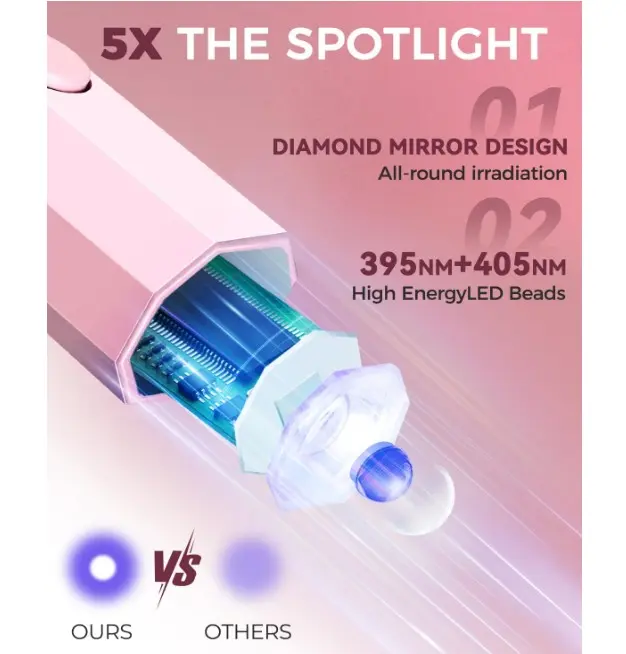 ·FAST DRYING: Our mini uv nail light adopting 395+405nm + convex lens, fast drying nail polish (choose the drying time according to different nails condition), without blacking out your hands at the same time.Meet the different needs of home nail diy, nail salon, friends party and so on