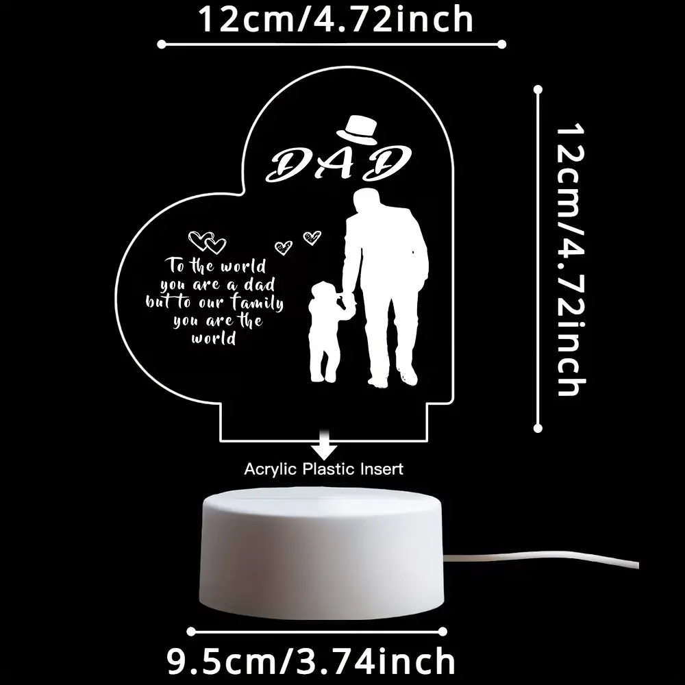 Dad Night Light, 2D Acrylic Heart Shaped Father & Child Desk Lamp, Personalized Father's Day Gift for Dad, Warm White LED Bedside Lamp, Birthday Christmas Thanksgiving Gift for Dad, USB Powered Home Decor Night Light