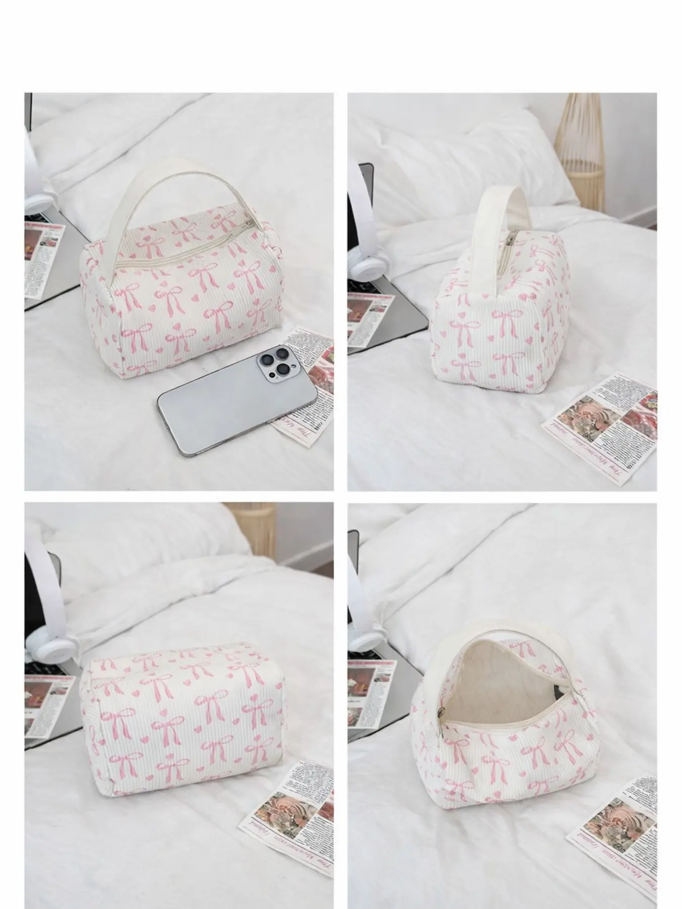 Say hello to the makeup bag that’s almost too cute to close. This 2026 Cute Pink Bow Makeup Bag is the perfect mix of charm, function, and “Wait… why is this actually holding everything?” energy. Designed with a sweet pink bow print and soft corduroy texture, this cosmetic organizer pouch instantly adds a playful, girly touch to your daily routine while keeping your beauty essentials neat, easy to find, and ready to go.