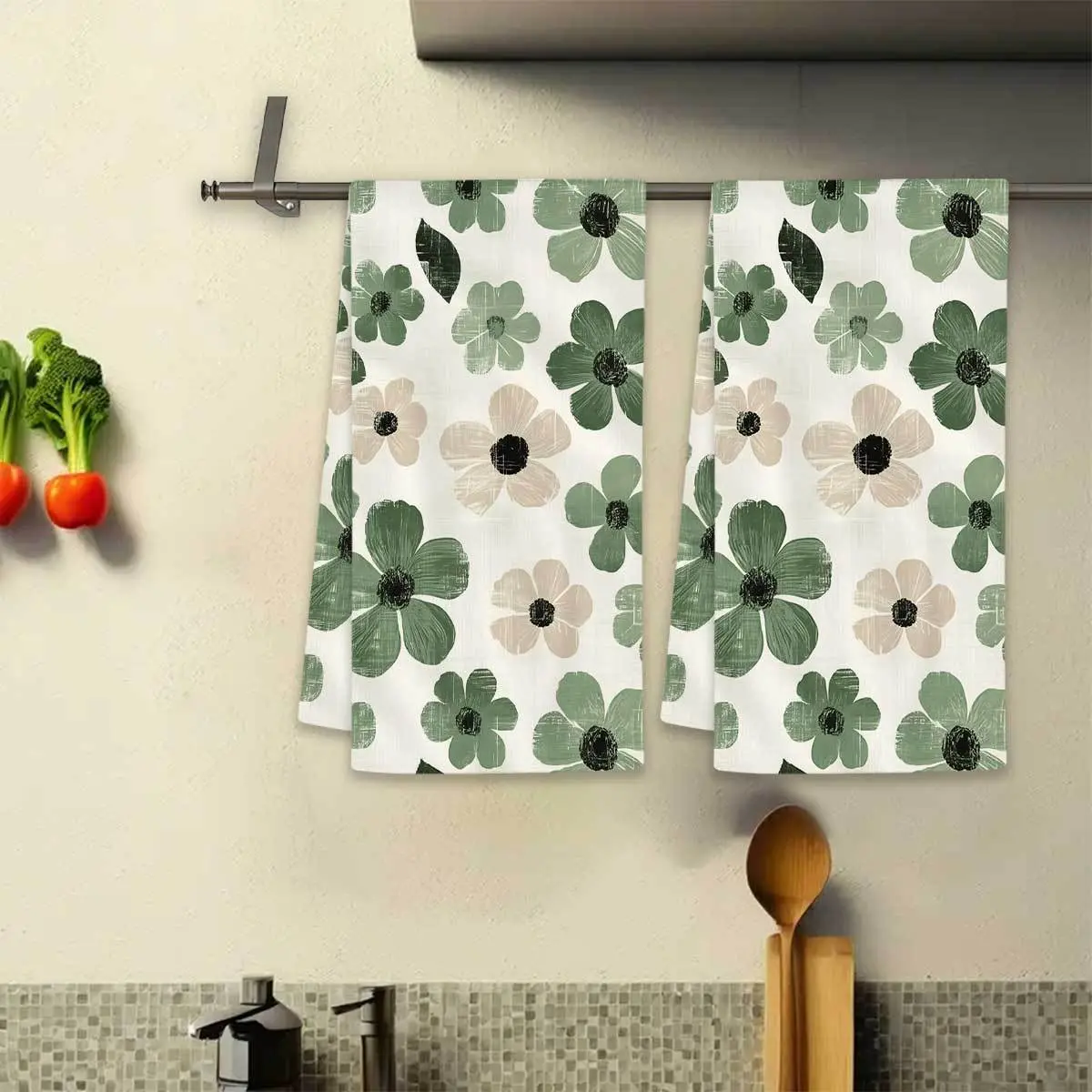 2pcs 23.6x15.7 In Sage Green Floral Farmhouse Kitchen Towels Reusable Dishcloths For Cooking Baking Cleaning Drying - Decorative Hand Towels For Home Bathroom Housewarming Gifts