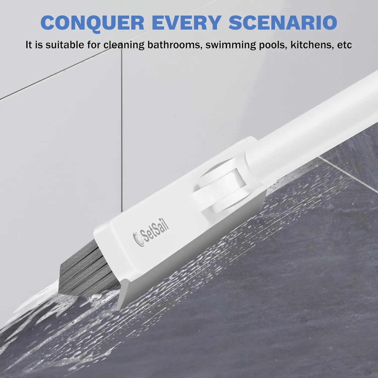 ·WIDE RANGE OF USE: This shower scrub brush with long handle can be used to clean various gaps and corners. Grout scrubber cleaning brushes are also great for showers, swimming pools, corridors, gaps, tile grooves, kitchen stoves and patios.