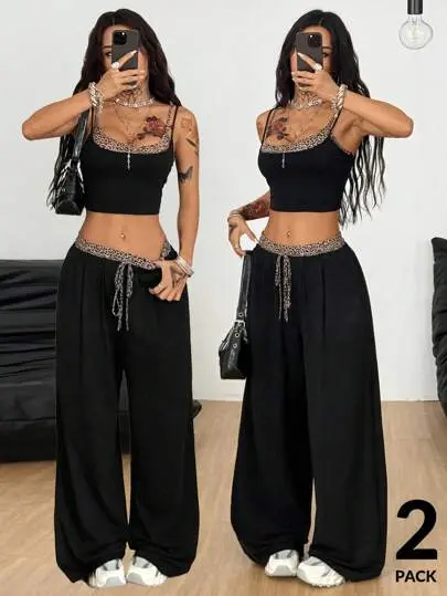 YULENA Ladies Square Collar Cami Bottoms Duo Casual Summer Apparel Clean Girl Aesthetic