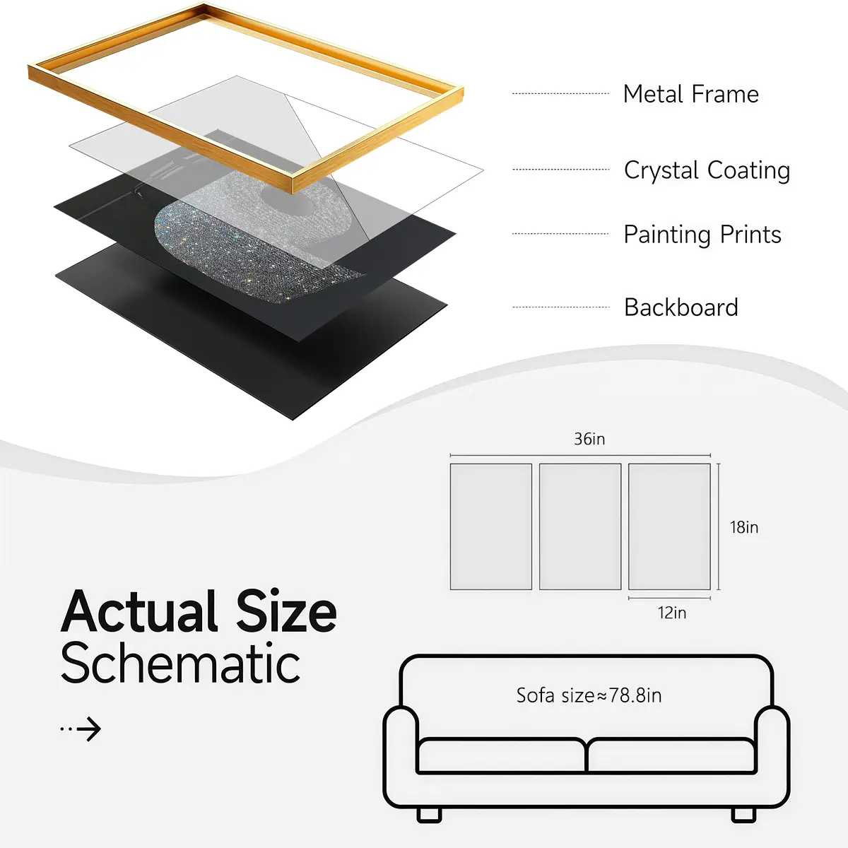 3 Counts Aluminum Alloy Framed Painting, Iridescent Abstract Geometric Art, Home Decoration For Living Room, Bedroom, Office, Restaurant, Hallway Wall Decor, Odorless Print Artwork, Luxury Perfect Gift For Friends And Family