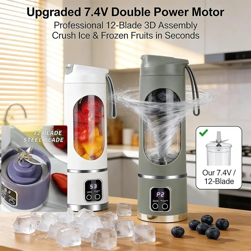 Portable Ultimate Blender! USB Rechargeable & Compact for Smoothies On-The-Go - Perfect Travel, Back To School & Gym! Leak Proof Design, Makes Shakes & Baby Food in Seconds cup juicer rechargeable mini blender vegetable