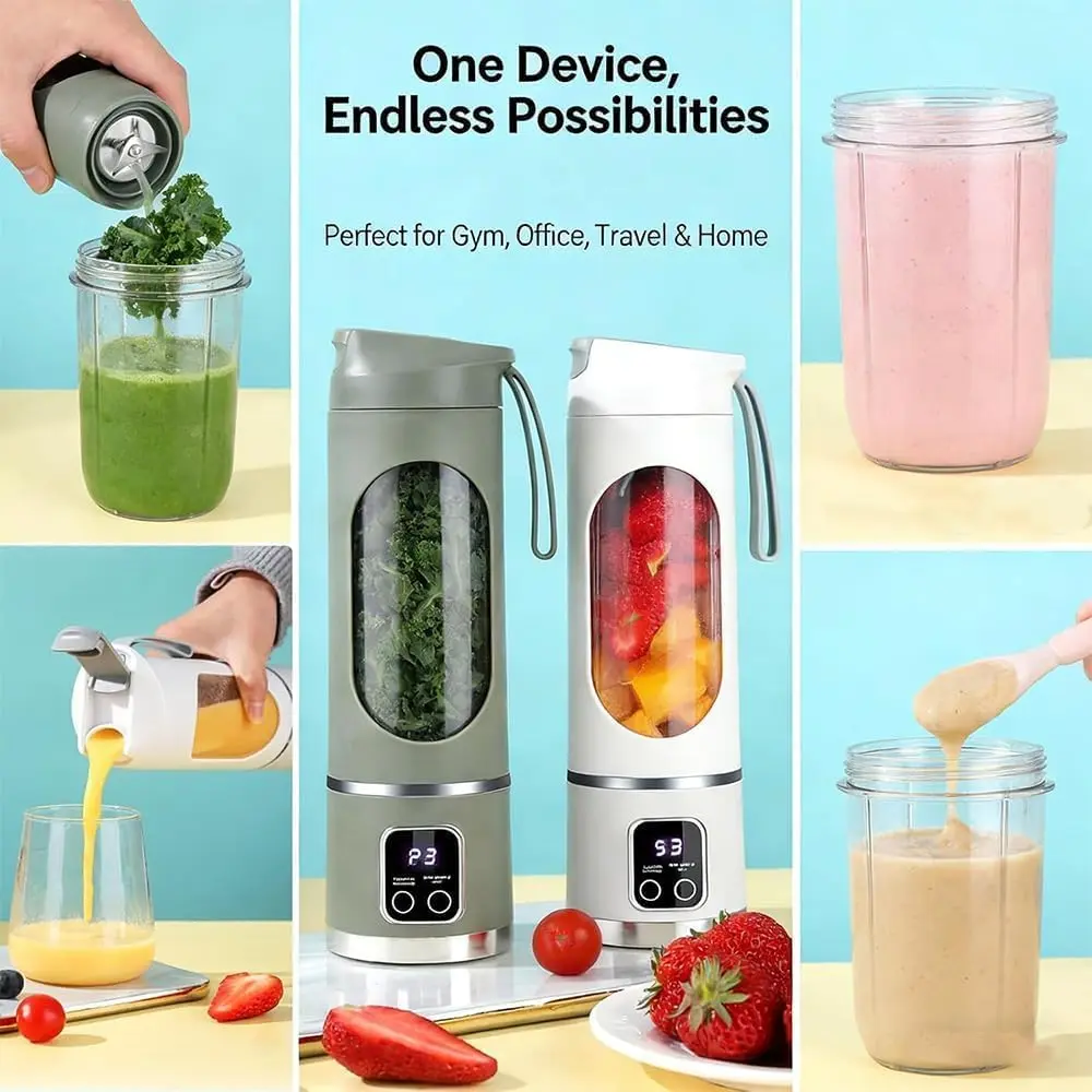 Key FeaturesSmart LED Display: Intuitive interface makes it easy to monitor blending time and mode.Multimode Functionality: Custom settings for smoothies, juices, protein shakes, and baby food.Leak-Proof & Travel-Ready: Designed with a tight seal and lightweight body for on-the-go use.USB Rechargeable: No cord? No problem. Recharge anywhere, anytime.Diet-Friendly Design: Perfect for healthy lifestyles, meal prep, and fitness plans.