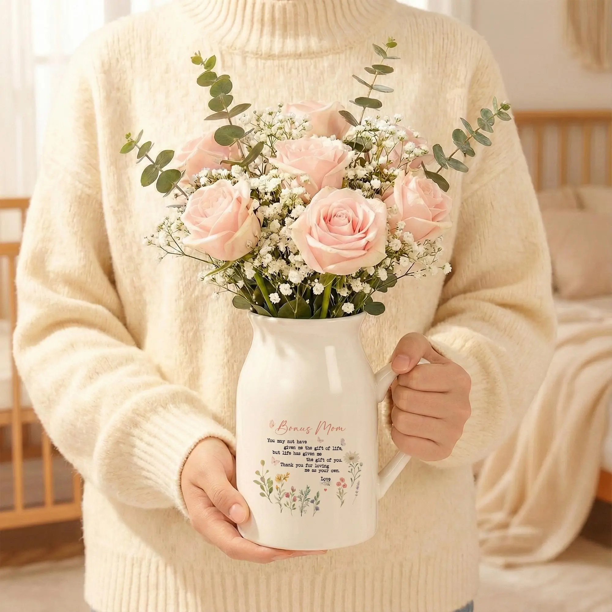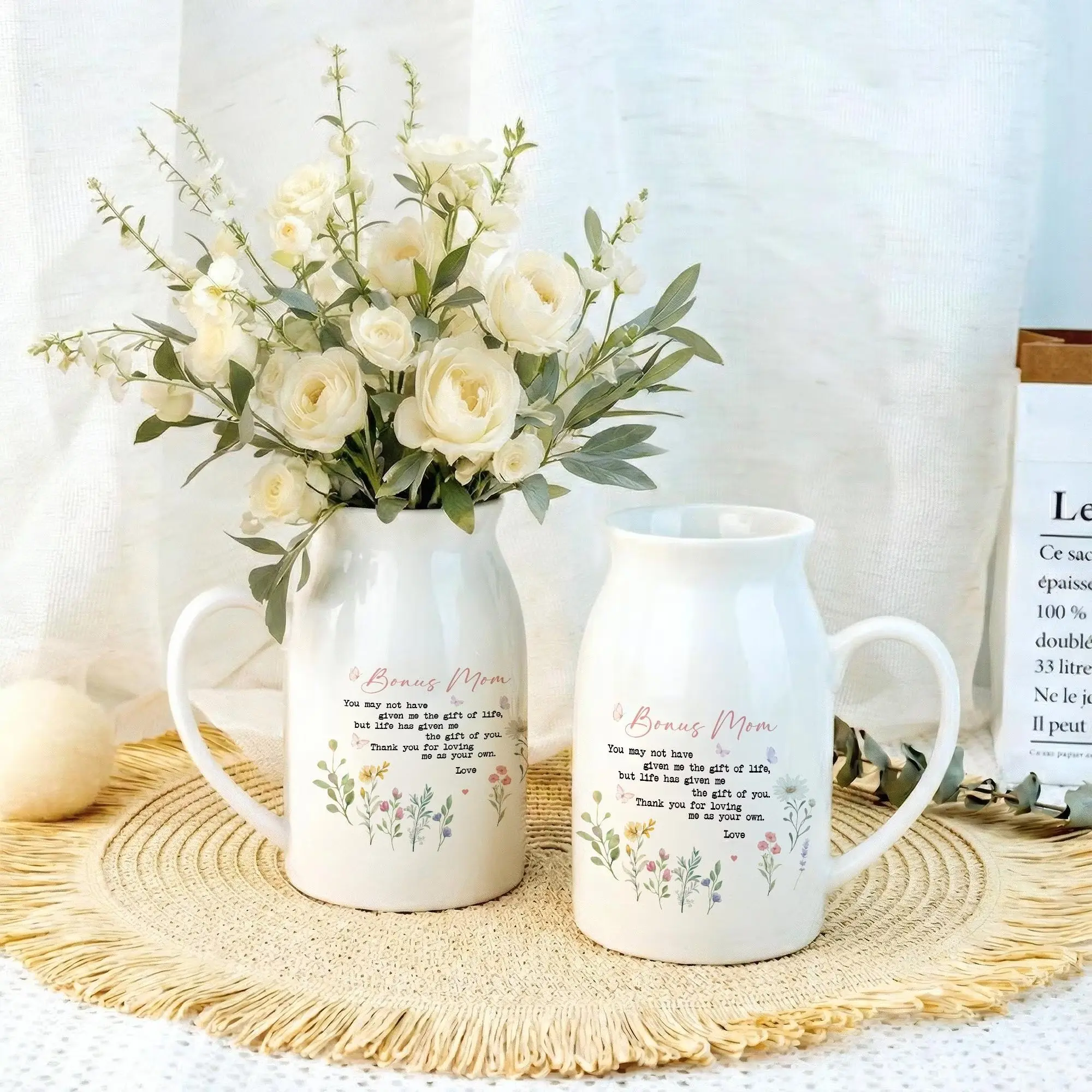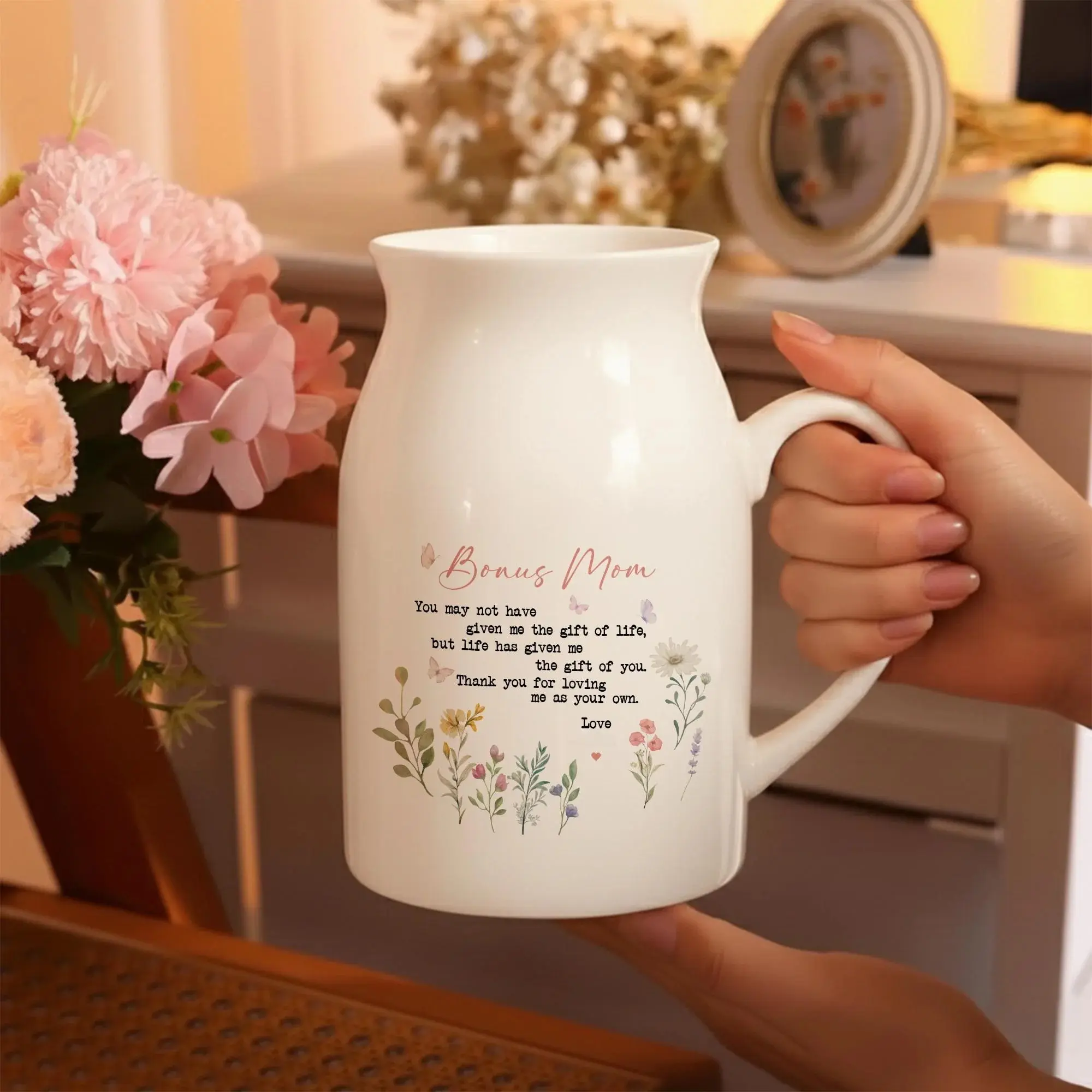 5. Thoughtful Bonus Mom Ceramic Vase, Mothers Day Gift for Stepmom, Appreciation Present, Godmother Wedding Gift