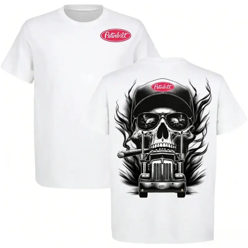 Peterbilt Skull Trucker TShirt, Truck Driver Shirt, Biker Skull Shirt, Big Rig Shirt Men, Trucker Life Tee, Heavy Duty Truck Lover Tee, Gift For Trucker