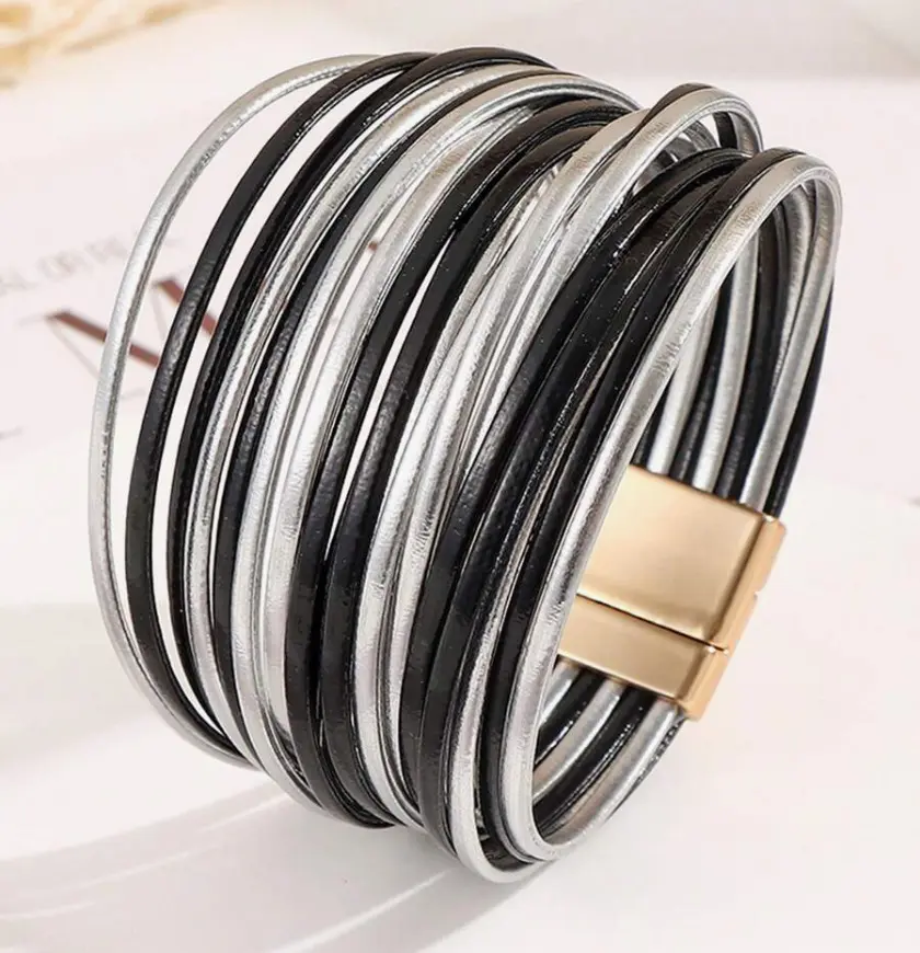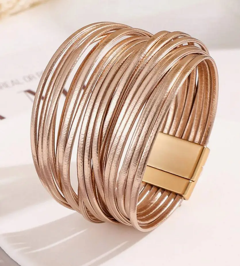 Elevate your everyday style with this statement-making multi-layer leather bracelet, a versatile accessory designed for both men and women who love bold, modern design.Crafted from premium PU leather with a luxurious gold-tone finish, this bracelet blends texture, shine, and effortless cool for a look that transitions seamlessly from casual to dressy.