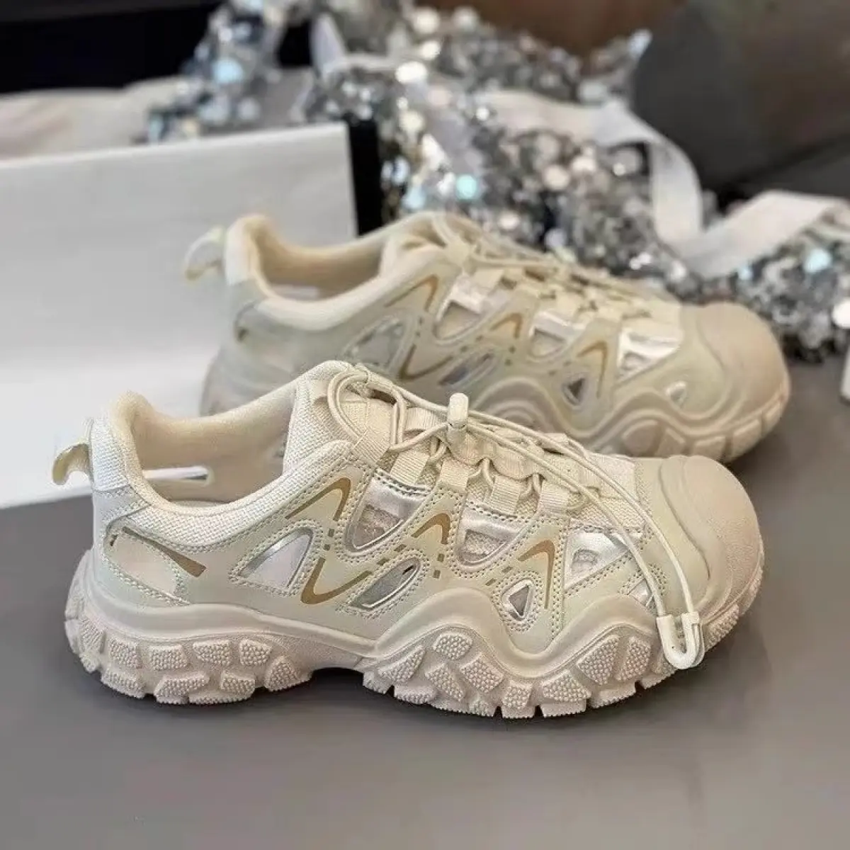 Ugly-Cute Women's Shoes 2026 Spring/Summer New Outdoor Hiking and Mountaineering Shoes Hollow Dad Shoes Thick-Soled Casual Sneakers1123