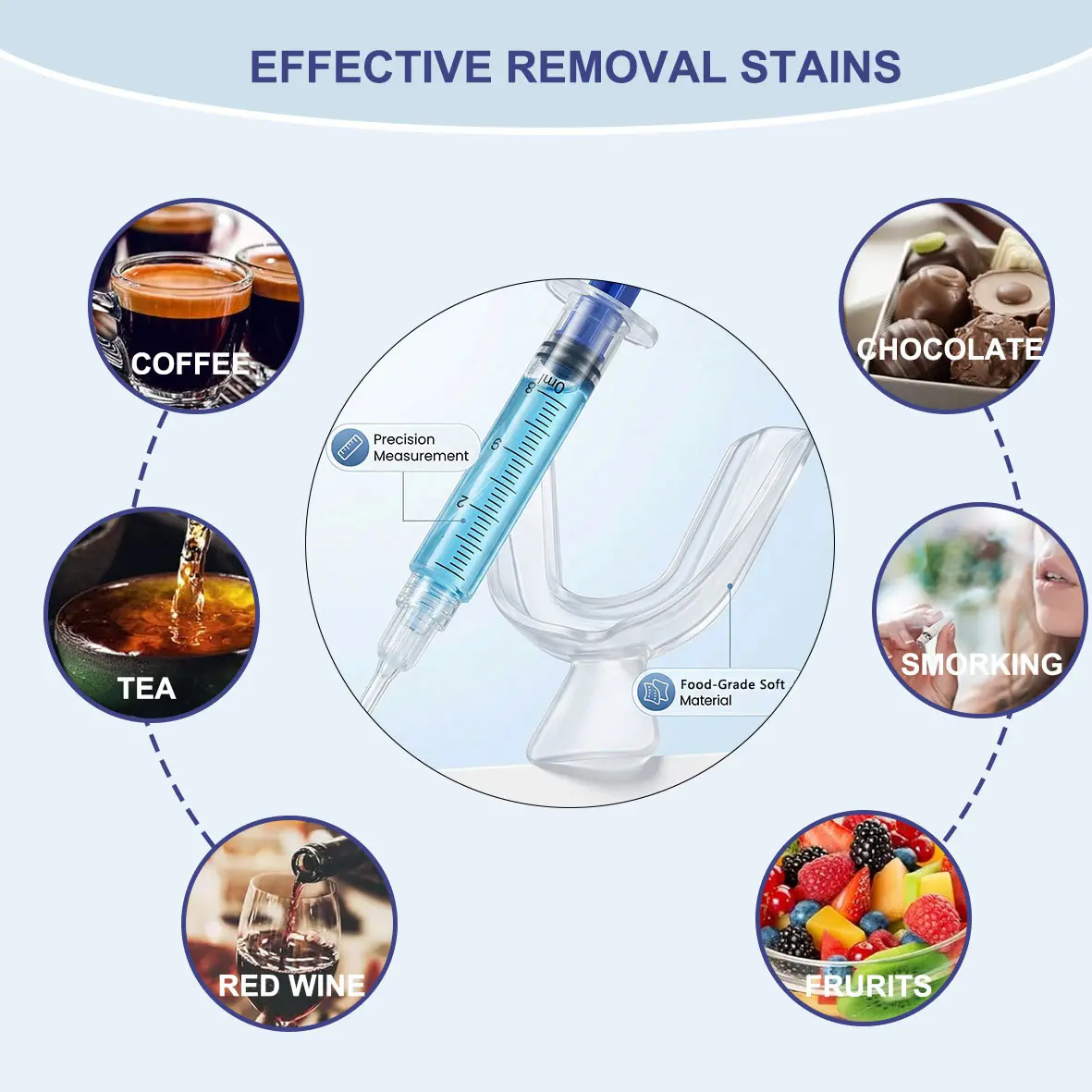Custom Fit Mouth Trays:Comes with 2 moldable mouth trays that shape to your unique mouth, ensuring a secure, even fit for optimal whitening gel application every time.