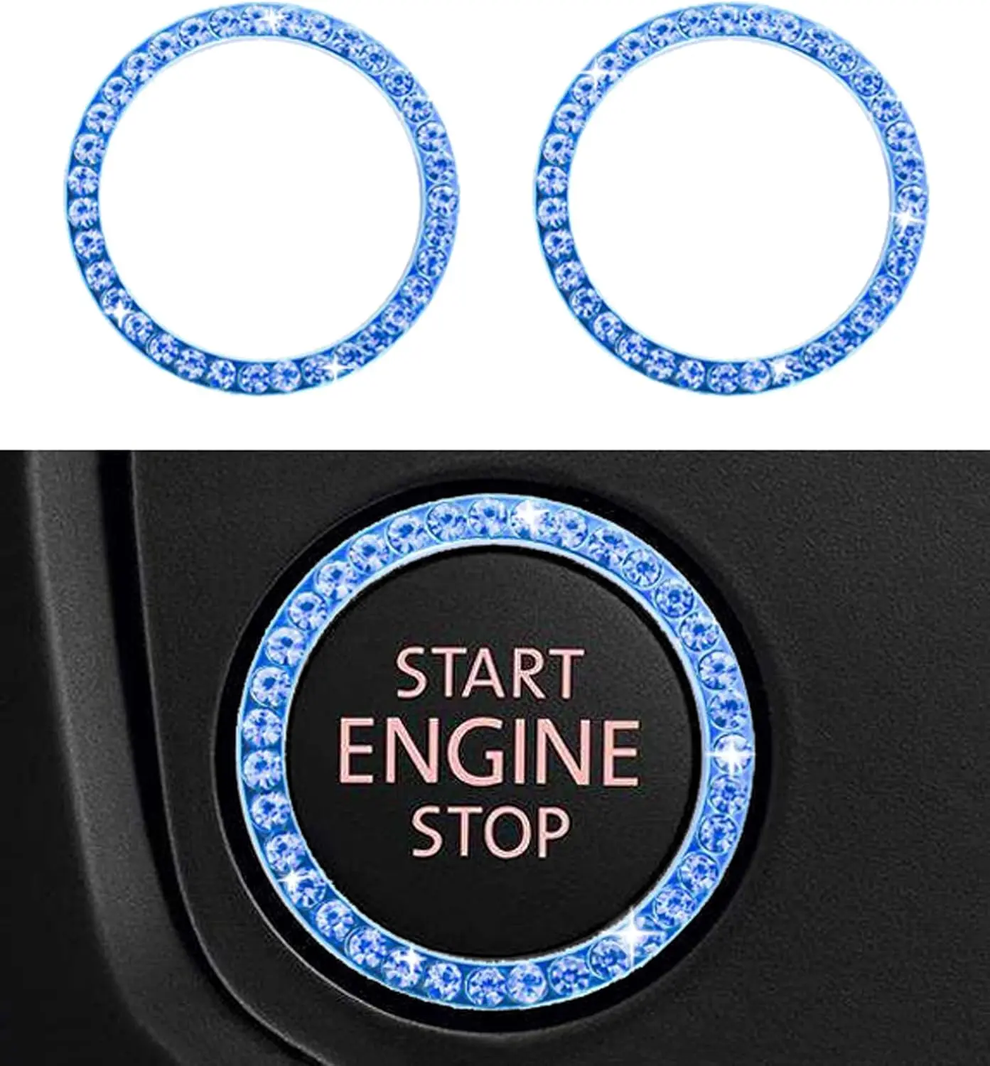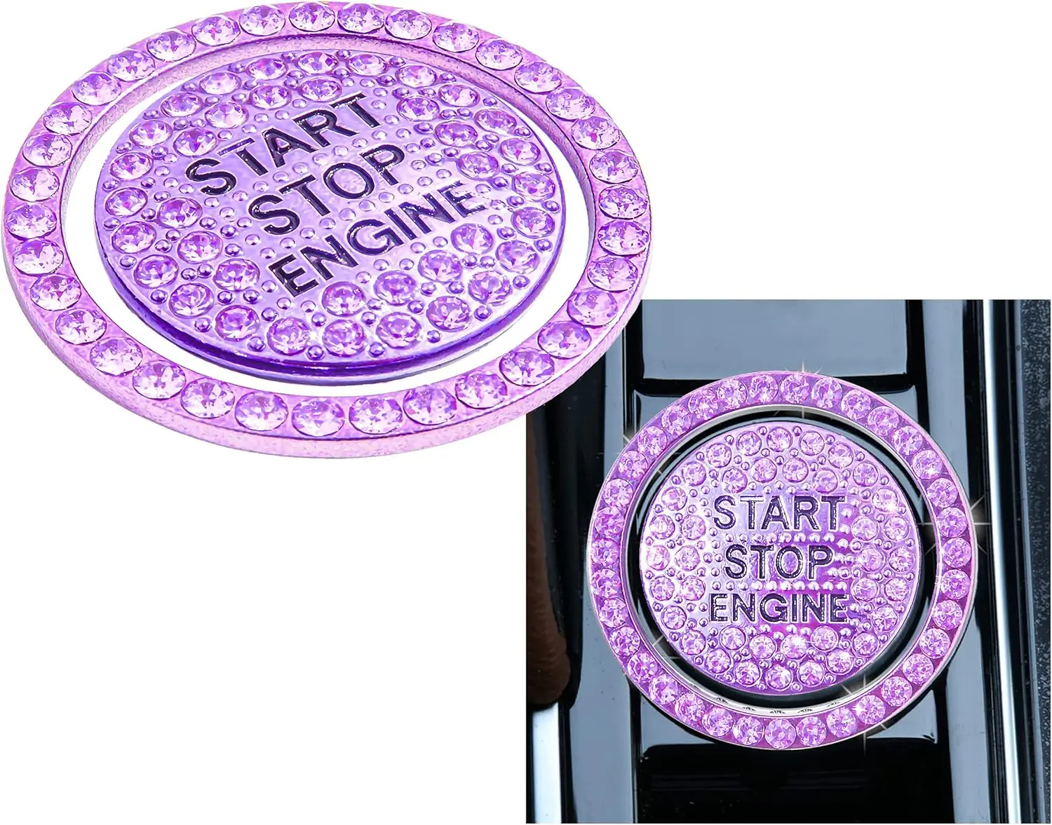Engine Start Stop Button Bling Ring ,Key Ignition Starter & Knob Crystal Rhinestone Cover, Push Start Button Diamond Decor