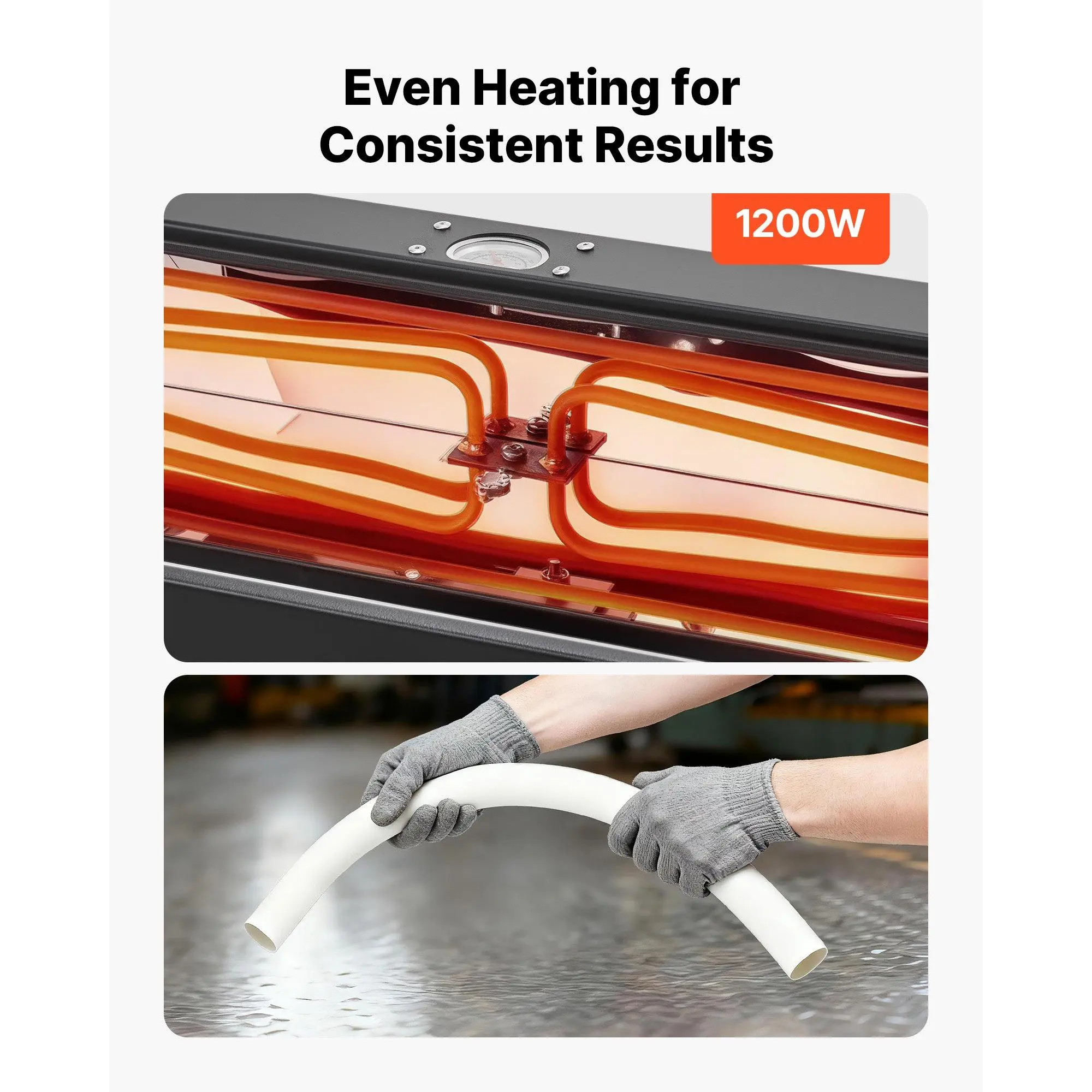 Fast & Precise Bending: This electric PVC conduit heater reaches working temperature in just 10 minutes, allowing effortless, smooth, and professional bends without extra force.Achieve clean curves with no twisting or deformation every timeEven Heating: Our PVC heater adopts dual-sided heating to spread heat uniformly along the entire pipe, softening it smoothly.Whether working with thin or thicker pipes, it avoids hot spots or uneven bending, delivering smooth, natural curvesWide Compatibility: Our PVC conduit heater fits pipes from 0.5 in to 2 in, handling a variety of tasks.Whether for electrical repair, pipe installation, or DIY projects, this heater delivers the flexibility and adaptability you needPortable & Easy to Use: Compact and lightweight at just 21.16 lbs, this electric PVC heater is easy to carry and set up indoors or outdoors, making it ideal for construction crews, electricians, or anyone needing a portable, powerful toolVersatile Applications: Whether for factory work, construction sites, DIY projects, or electrical repairs, this multi-functional PVC bender heater delivers reliable performance indoors, on-site, or in the garage, ensuring ideal results every timeVEVOR Electric PVC Conduit Heater, 1/2" to 2", 1200W Rapid and Even Heating, PVC Bender Heater Pipe Bending Tool with Carrying Handle, Easy to Use, for Construction Crews, DIY Enthusiasts, Workshop