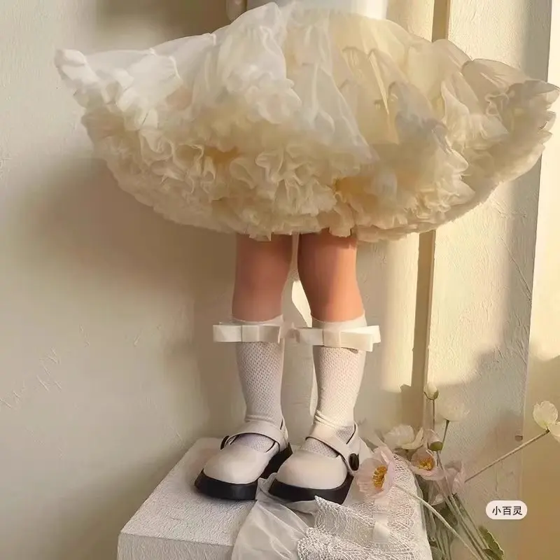 Girl's tutu dress large fluffy version bunny dress milky apricot tutu dress with shotr cream-colored ballet princess dress