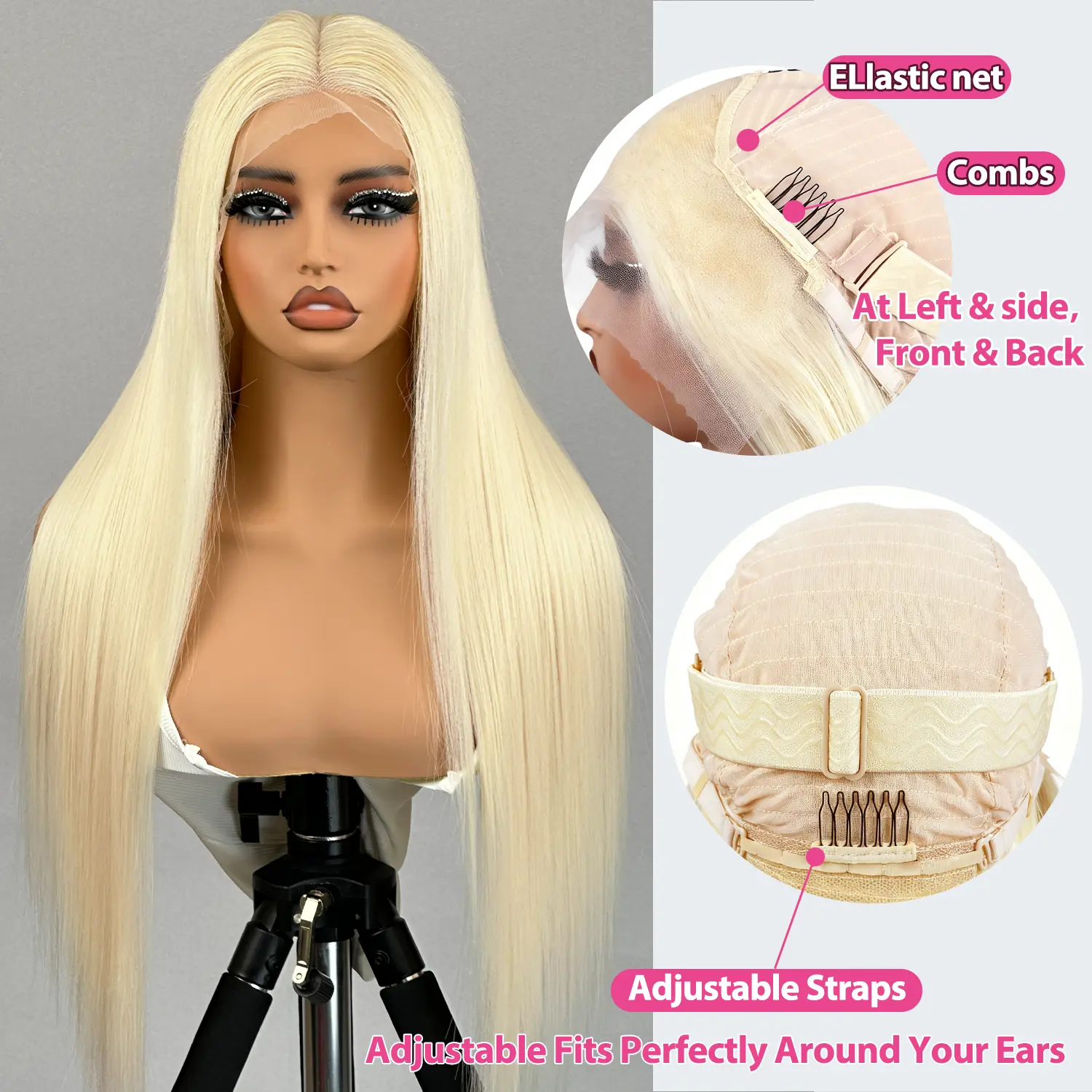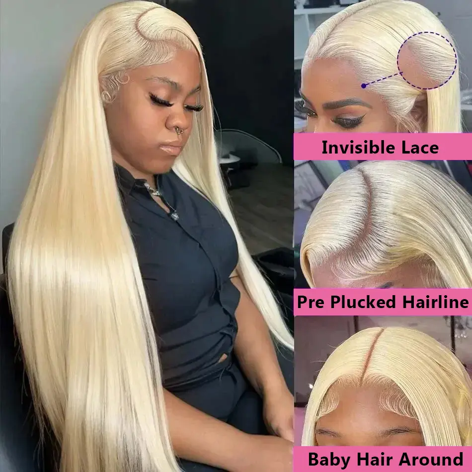 34 Inch #613 Lace Front Wig Human Hair Blonde Straight 13X4 HD Transparent Lace Front Wigs Blended Hair 200% Density Blonde Glueless Wigs #613 HD Straight Lace Frontal Wig Pre Plucked with Baby Hair