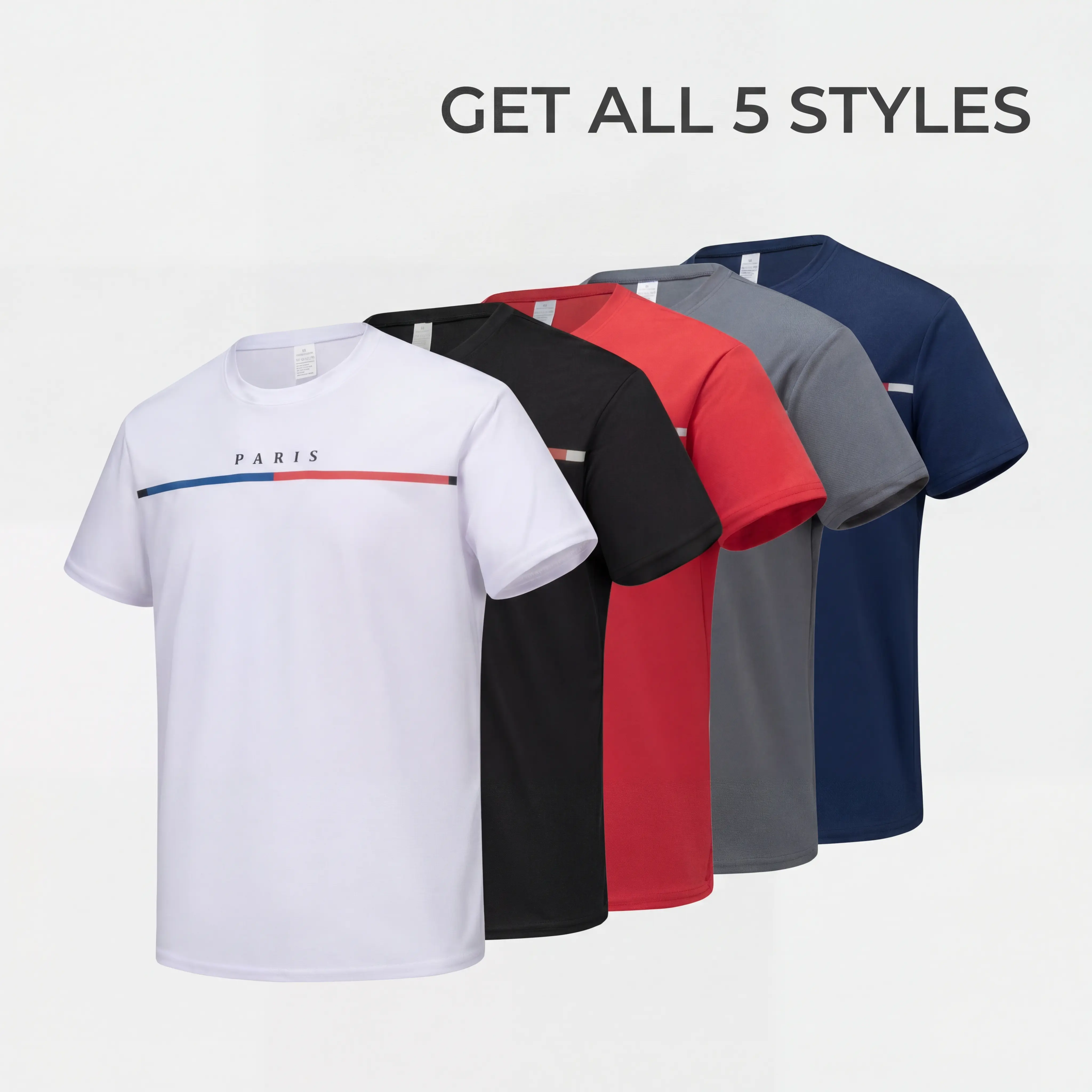 This 5-piece set includes men's daily casual short-sleeved crew neck T-shirts. Perfect for summer sports and leisure, these tees are breathable and lightweight. Ideal for outdoor activities, they offer comfort and flexibility. The stretch fabric ensures a snug fit, enhancing your outdoor experience.