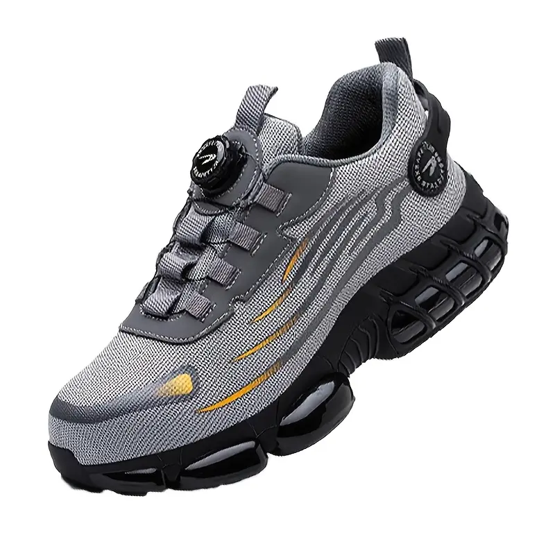 Here comes the "safety armor" for hardcore professionals! These professional swivel-button steel toe work boots offer military-grade protection for every work scenario~ The steel toe cap passes rigorous impact tests, withstanding 200J of energy to resist heavy object crushing; the puncture-resistant midsole acts as an "invisible shield," effortlessly defying penetration from nails and sharp objects, making them ideal for high-risk environments like construction sites and warehouses. The swivel-button quick-lacing system combined with traditional laces balances efficiency and fit, allowing instant adjustment to optimal comfort. The shock-absorbing insole paired with a slip-resistant rubber outsole reduces foot fatigue while providing strong traction on oily or wet surfaces to prevent slips. The breathable mesh lining enhances air circulation, keeping feet dry even during long shifts. From construction sites to machinery operations, these boots serve as reliable partners for workplace safety with "comprehensive protection + user-friendly design," ensuring every step is secure and stable, and embodying professionalism and responsibility through equipment.