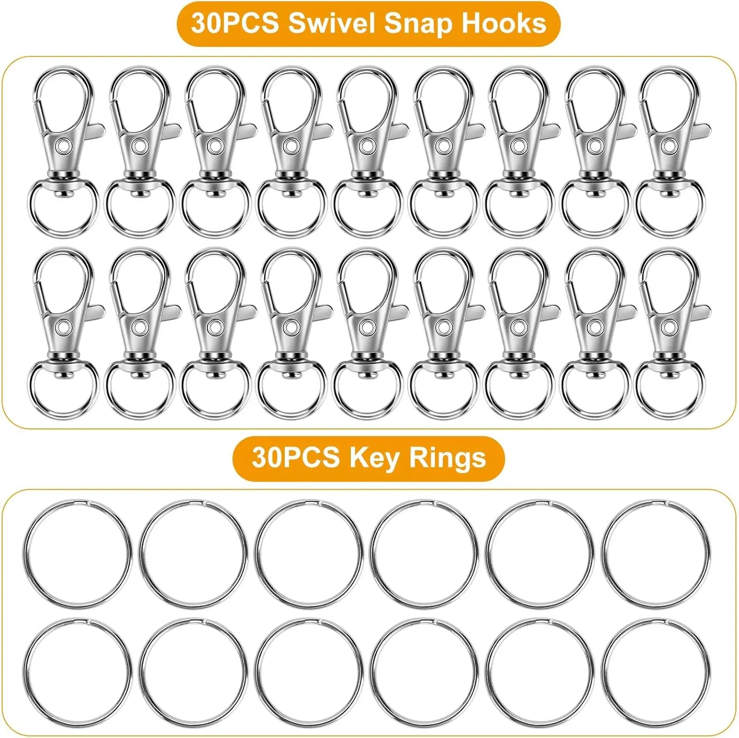 This kit includes 60PCS for your crafting needs. It comes with 30PCS Keychains Clips Hooks and 30PCS Key Chain Rings. Perfect for jewelry making enthusiasts. The kit also features Lobster Claw Clasps with Keychains Rings Accessories. Ideal for creating unique keychains.