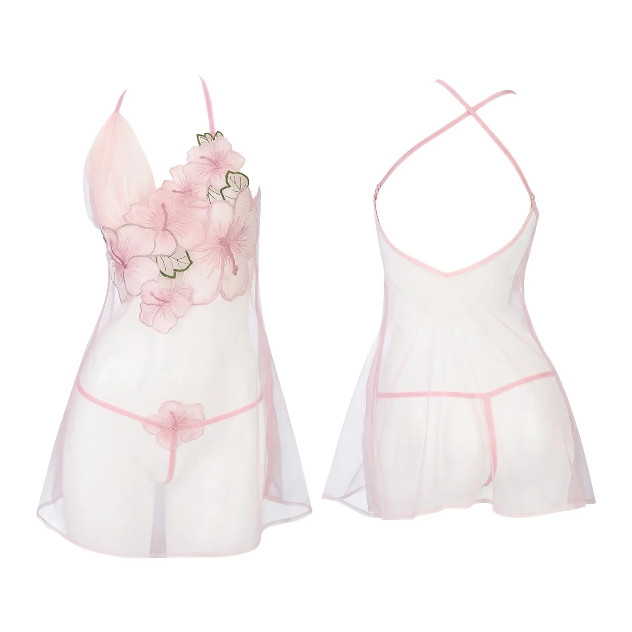 【Package Includes】 Set includes one sheer floral babydoll dress and one matching pink thong.