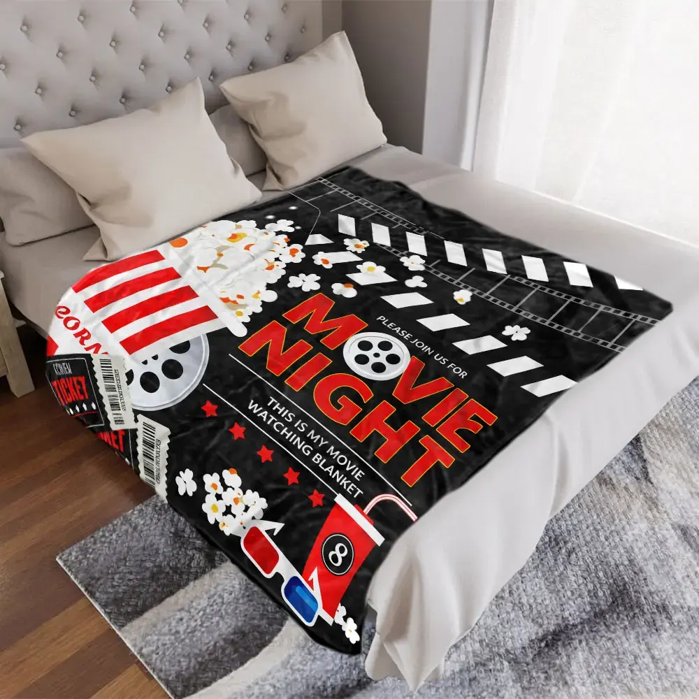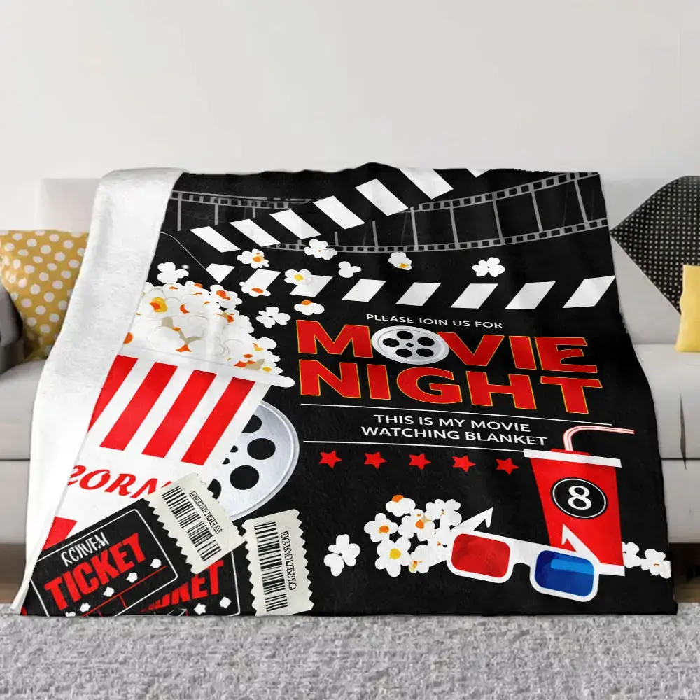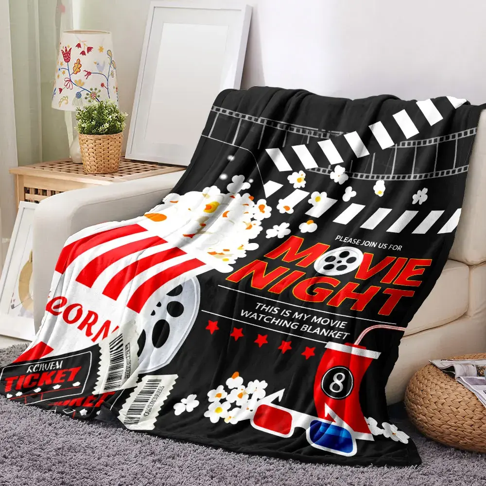 Movie Night Popcorn Film Print Flannel Blanket Cooling Blanket Homegoods Soft Cozy For Bedroom Living Room For Movie Lovers Family Perfect Gift